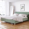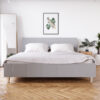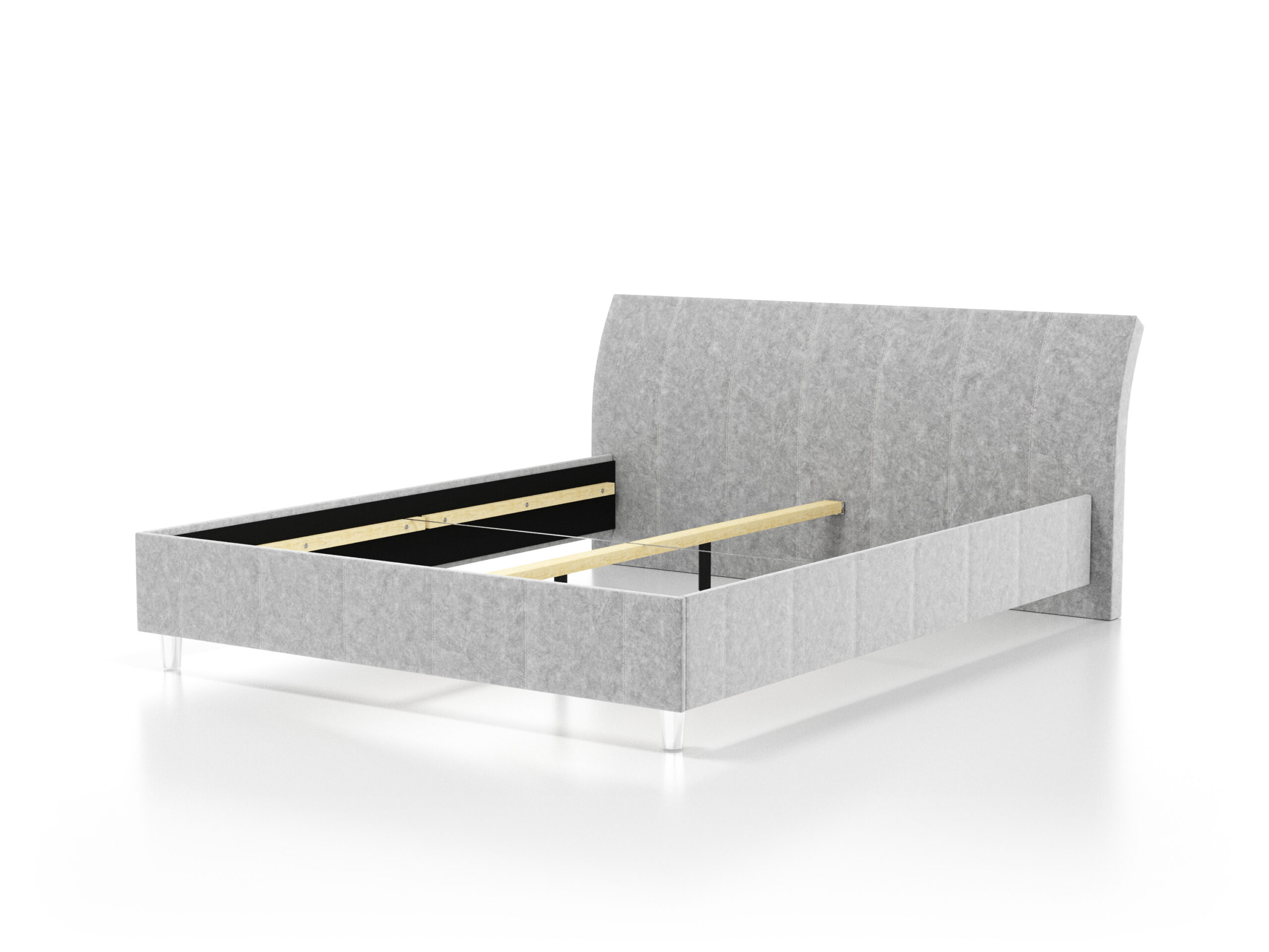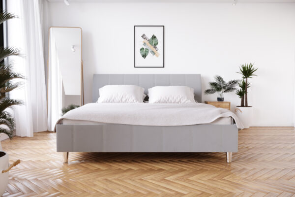 Nowoczesne łóżko tapicerowane za sprawą prostej i wąskiej ramy doskonale wpisze się w przytulny klimat małej sypialni, choć i w przestronnych wnętrzach zwolennicy lekkich form dostrzegą urok tego minimalistycznego mebla. Konstrukcja z płyty w obiciu z tkaniny meblowej, do wyboru z szerokiej gamy kolorystycznej. Oryginalny charakter produktu podkreśla spójny z ramą, wygięty zagłówek. Dodatkowego charakteru dodają mu pionowe przeszycia. Poza standardowymi wymiarami, łóżko jest dostępne również w nietypowej szerokości. Istnieje możliwość otapicerowania tyłu zagłówka za dodatkową opłatą, po ustaleniach ze specjalistami w salonach meblowych. Dla uzyskania pełnego zadowolenia klienta zalecamy odpowiedni stelaż i materac z naszej oferty.