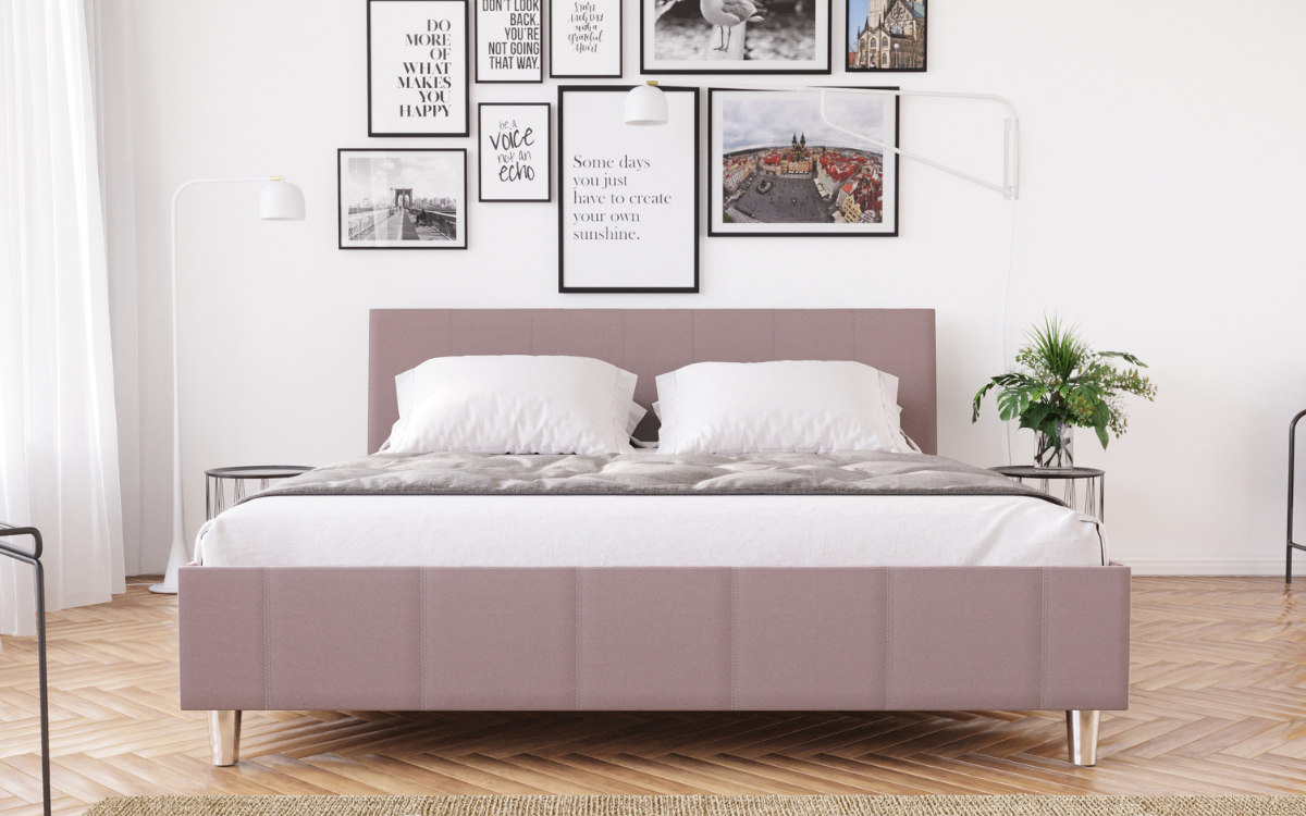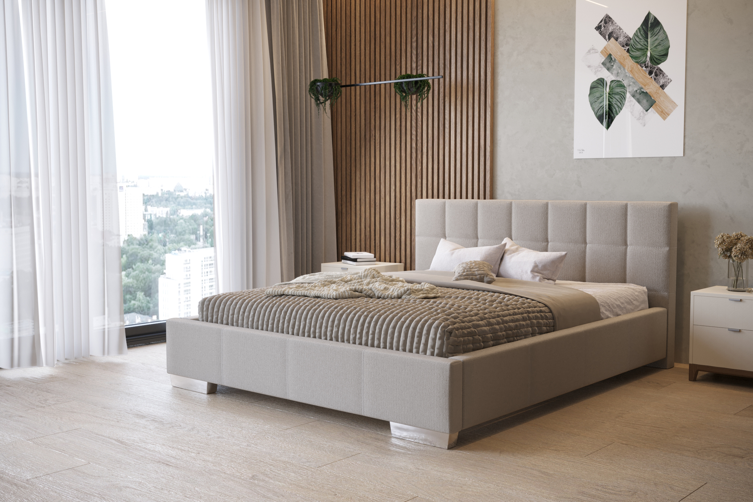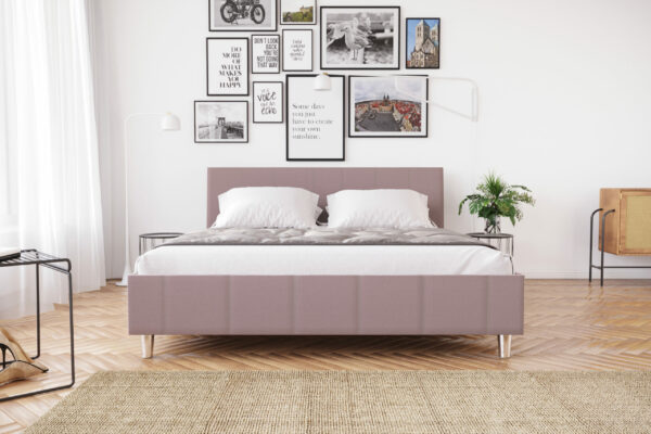 Nowoczesne łóżko tapicerowane za sprawą prostej i wąskiej ramy doskonale wpisze się w przytulny klimat małej sypialni, choć i w przestronnych wnętrzach zwolennicy lekkich form dostrzegą urok tego minimalistycznego mebla. Konstrukcja z płyty w obiciu z tkaniny meblowej, do wyboru z szerokiej gamy kolorystycznej. Łóżko wraz z zagłówkiem tworzą atrakcyjną i spójną całość. Dodatkowego charakteru zagłówkowi dodają pionowe przeszycia. Całość dopełniają srebrne nóżki. Poza standardowymi wymiarami, łóżko jest dostępne również w nietypowej szerokości. Zagłówek, po konsultacji z naszymi ekspertami w salonach sprzedaży, może zostać obustronnie otapicerowany. Dla uzyskania pełnego zadowolenia klienta zalecamy odpowiedni stelaż i materac z naszej oferty.