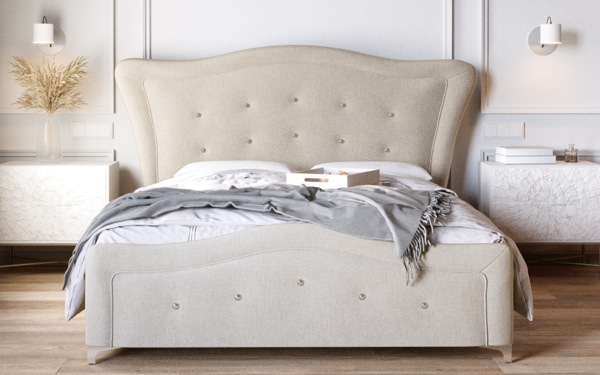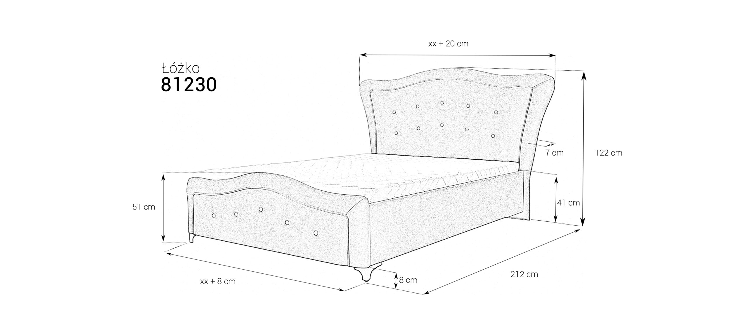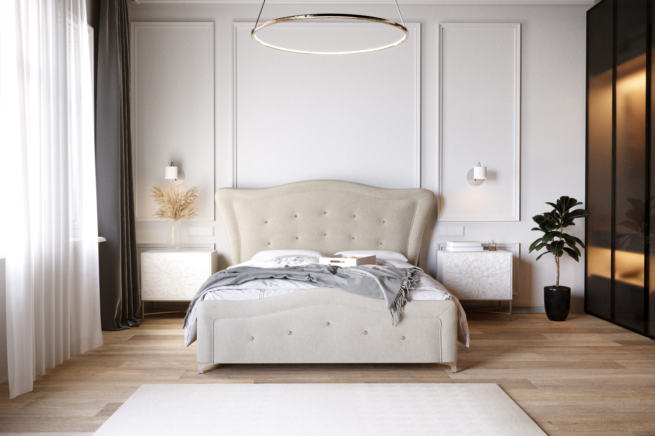 Eleganckie, efektowne, tapicerowane łóżko o klasycznej konstrukcji, subtelnie ozdobione kryształami Swarovski™. Doskonale sprawdzi się w sypialni z charakterem. Łóżko z płyty obite jest tkaniną meblową w szerokiej gamie kolorystycznej. Łóżko dostępne jest w opcji z pojemnikiem na pościel ze stelażem w ramie drewnianej lub metalowej. Poza standardowymi wymiarami, łóżko jest dostępne również w nietypowej długości i szerokości. Za dodatkową opłatą zagłówek można otapicerować w tylnej części. Dla uzyskania pełnego zadowolenia klienta zalecamy odpowiedni stelaż i materac z naszej oferty.