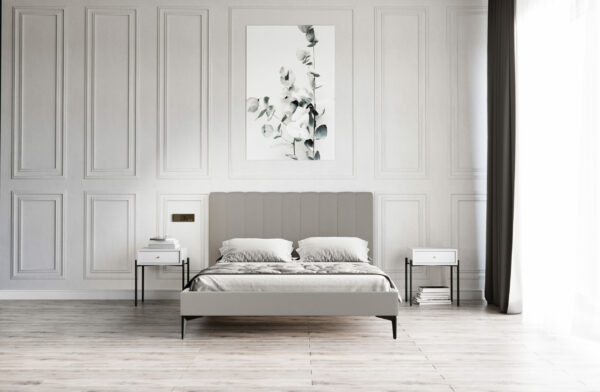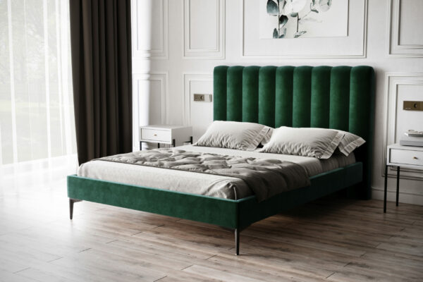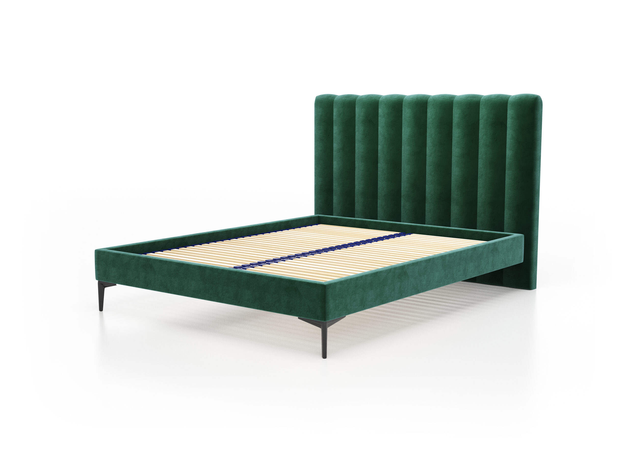 Nowoczesne, efektowne, tapicerowane łóżko, którego prosta rama i zagłówek z wyrazistym, pionowym pikowaniem tworzą klasyczną kompozycję. Doskonale sprawdzi się zarówno w klasycznej, jak i nowoczesnej sypialni. Konstrukcja drewniana na zewnątrz obita jest tkaniną meblową w szerokiej gamie kolorystycznej, a w korpusie łóżka, od strony wewnętrznej, widoczne jest drewno. Mebel stoi stabilnie na subtelnych, smukłych nóżkach, które dają wrażenie delikatności i lekkości całej konstrukcji.  Za dodatkową opłatą zagłówek można otapicerować w tylnej części. Poza standardowymi wymiarami, łóżko jest dostępne również w nietypowej długości i szerokości. Istnieje możliwość wyboru wysokości mocowania listew podtrzymujących stelaż. Dla uzyskania pełnego zadowolenia klienta zalecamy odpowiedni stelaż i materac z naszej oferty z naszej oferty. Rama łóżka jest zmontowana w całości, dzięki czemu zyskuje dodatkową stabilność. Poleca się rozmiary 180x200 lub mniejsze. Większe gabaryty mogą zostać wykonane na indywidualne zamówienia. Należy się upewnić, czy będzie możliwe wniesienie łóżka do sypialni.