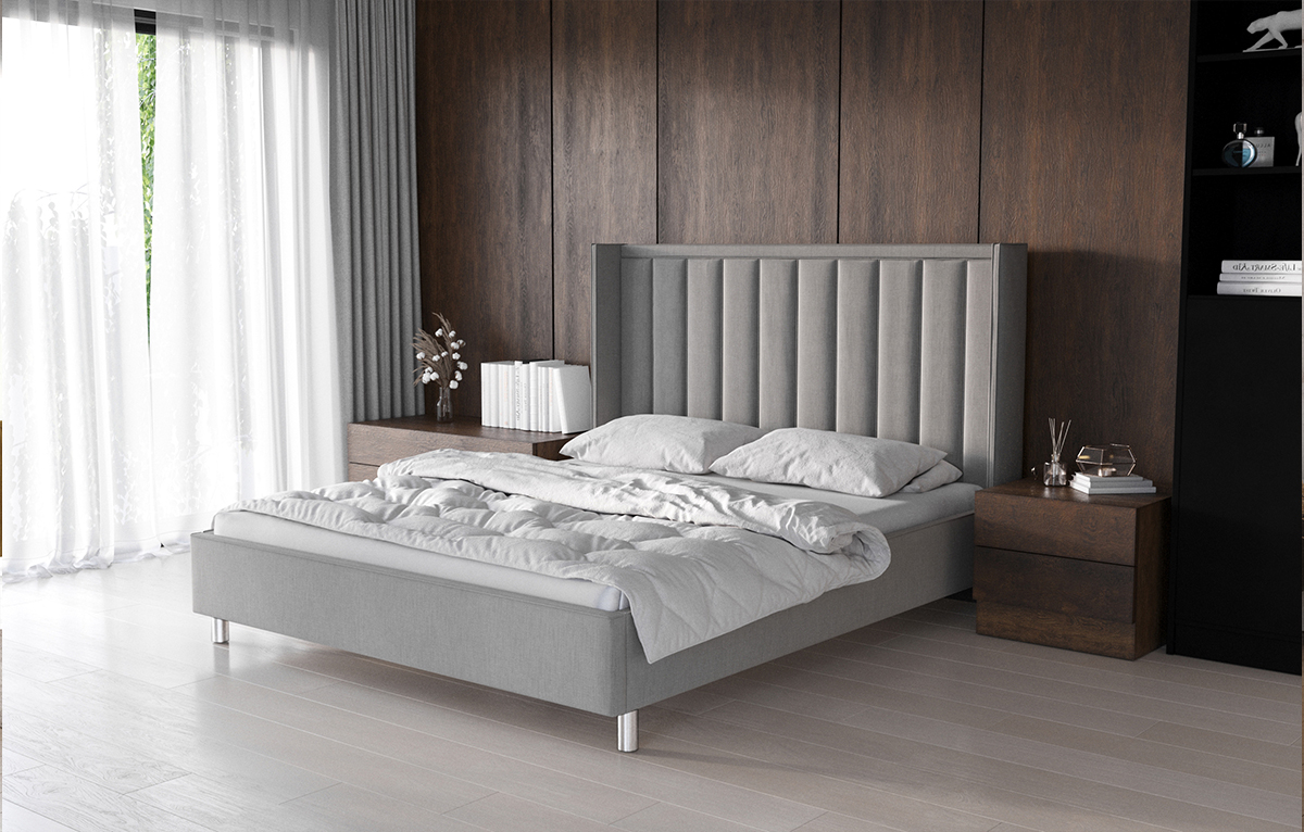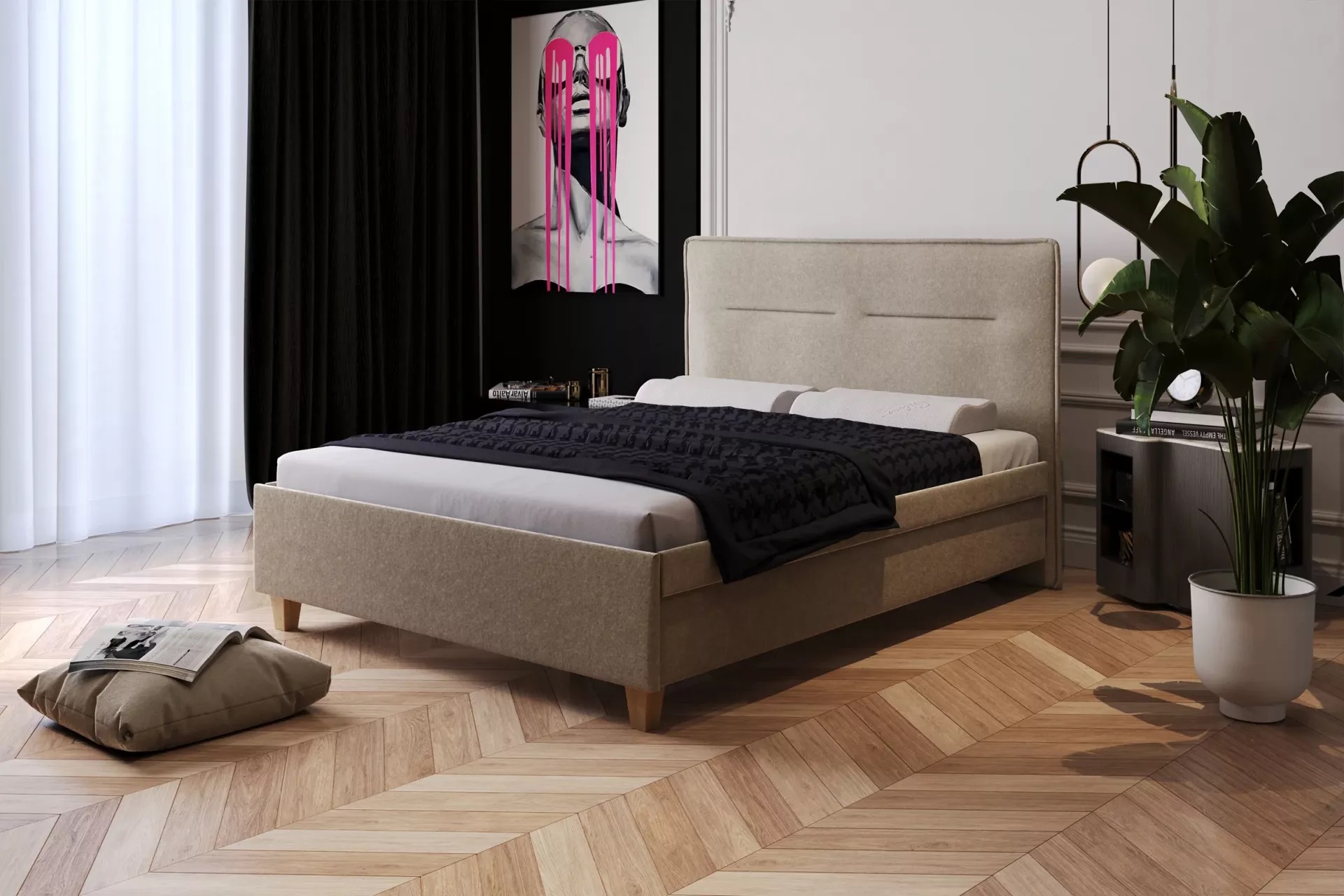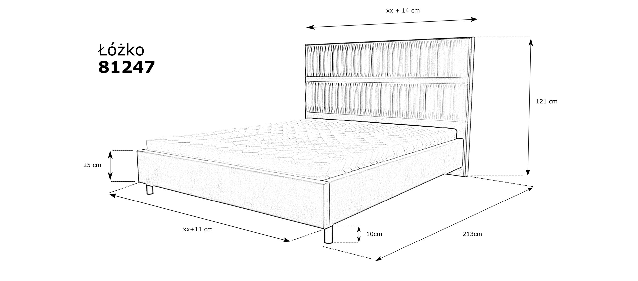 Nowoczesne, tapicerowane łóżko, którego prosta rama zwieńczona finezyjnym, marszczonym zagłówkiem tworzą kompozycję idealną do wnętrz zarówno nowoczesnych, jak i klasycznych. Konstrukcja łóżka wykonana jest z płyty i na zewnątrz obita jest tkaniną meblową w szerokiej gamie kolorystycznej. Mebel stoi stabilnie na 10-cm okrągłych, chromowanych, plastikowych nogach. Poza standardowymi wymiarami, łóżko jest dostępne również w nietypowej długości i szerokości. Za dodatkową opłatą zagłówek można otapicerować w tylnej części. Dla uzyskania pełnego zadowolenia klienta zalecamy odpowiedni stelaż i materac z naszej oferty.