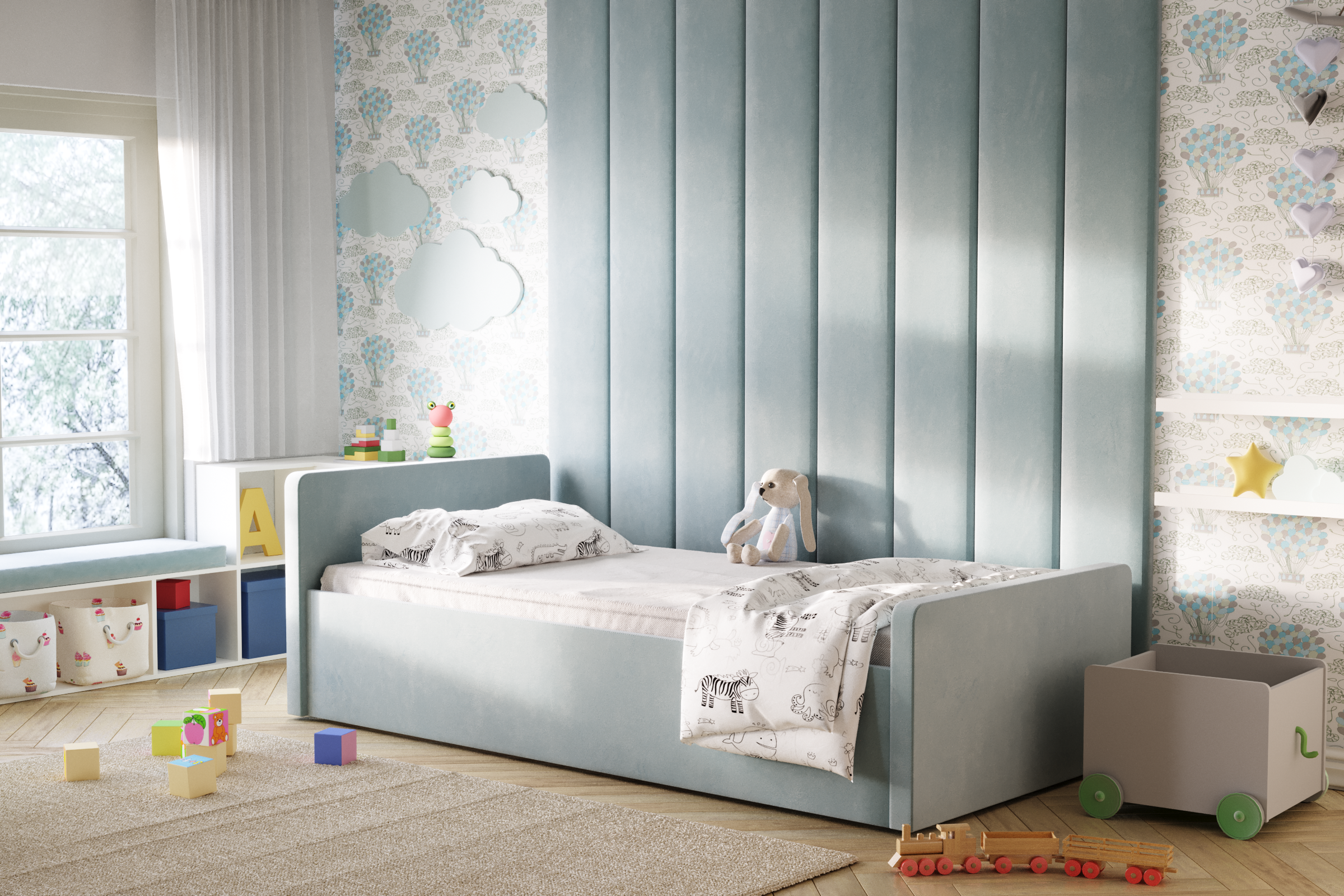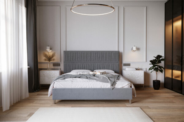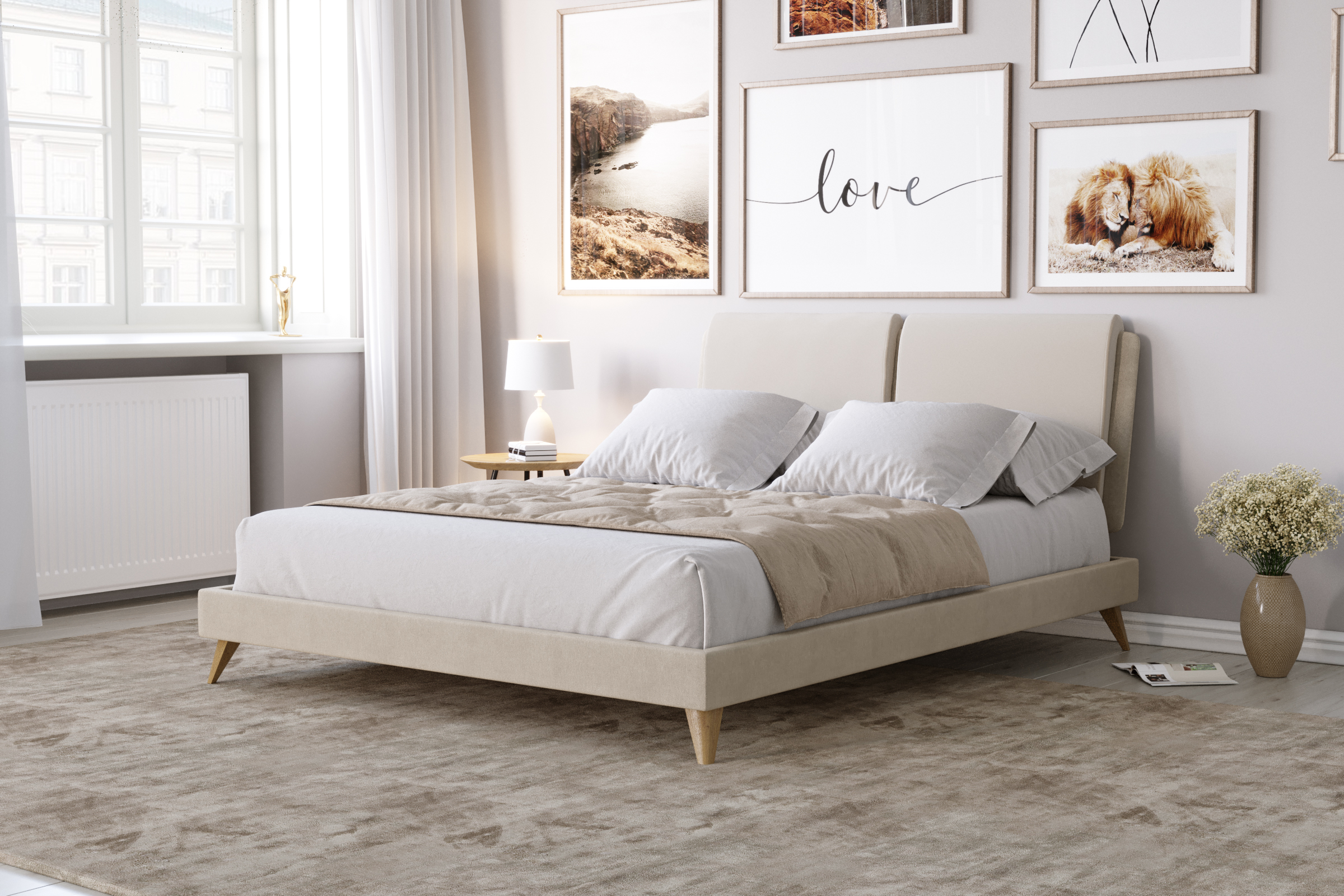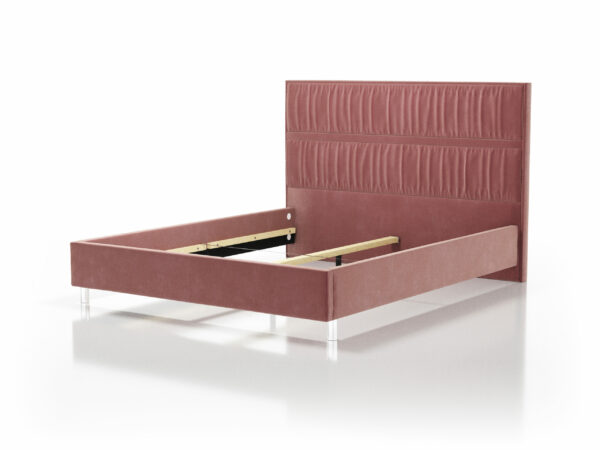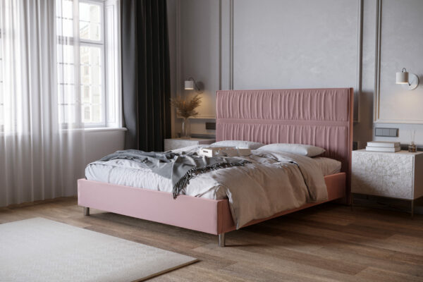Nowoczesne, tapicerowane łóżko, którego prosta rama zwieńczona finezyjnym, marszczonym zagłówkiem tworzą kompozycję idealną do wnętrz zarówno nowoczesnych, jak i klasycznych. Konstrukcja łóżka wykonana jest z płyty i na zewnątrz obita jest tkaniną meblową w szerokiej gamie kolorystycznej. Mebel stoi stabilnie na 10-cm okrągłych, chromowanych, plastikowych nogach. Poza standardowymi wymiarami, łóżko jest dostępne również w nietypowej długości i szerokości. Za dodatkową opłatą zagłówek można otapicerować w tylnej części. Dla uzyskania pełnego zadowolenia klienta zalecamy odpowiedni stelaż i materac z naszej oferty.
