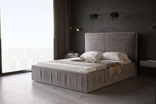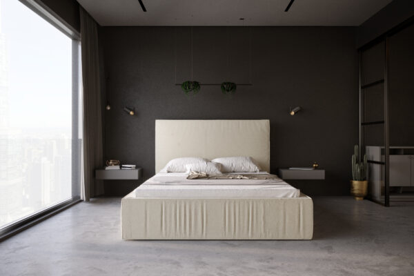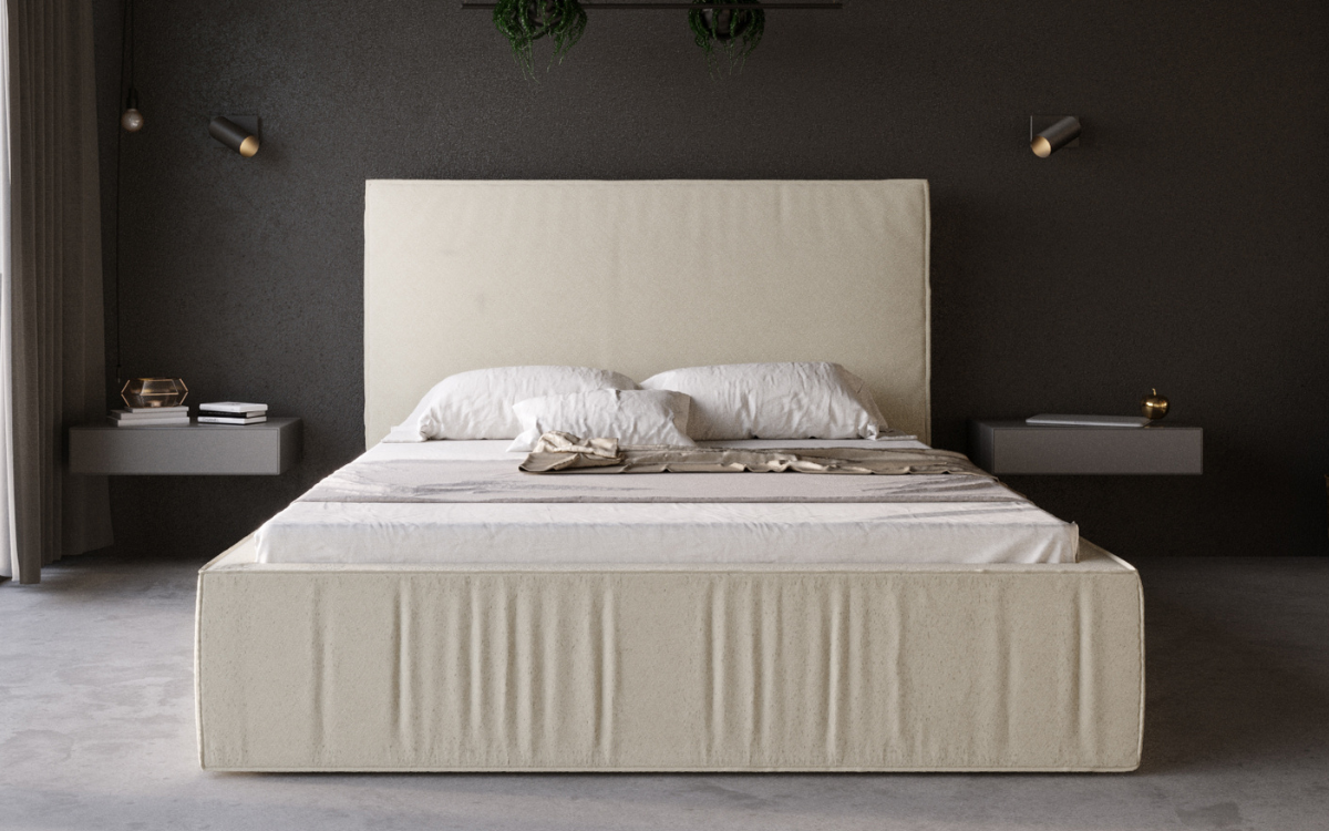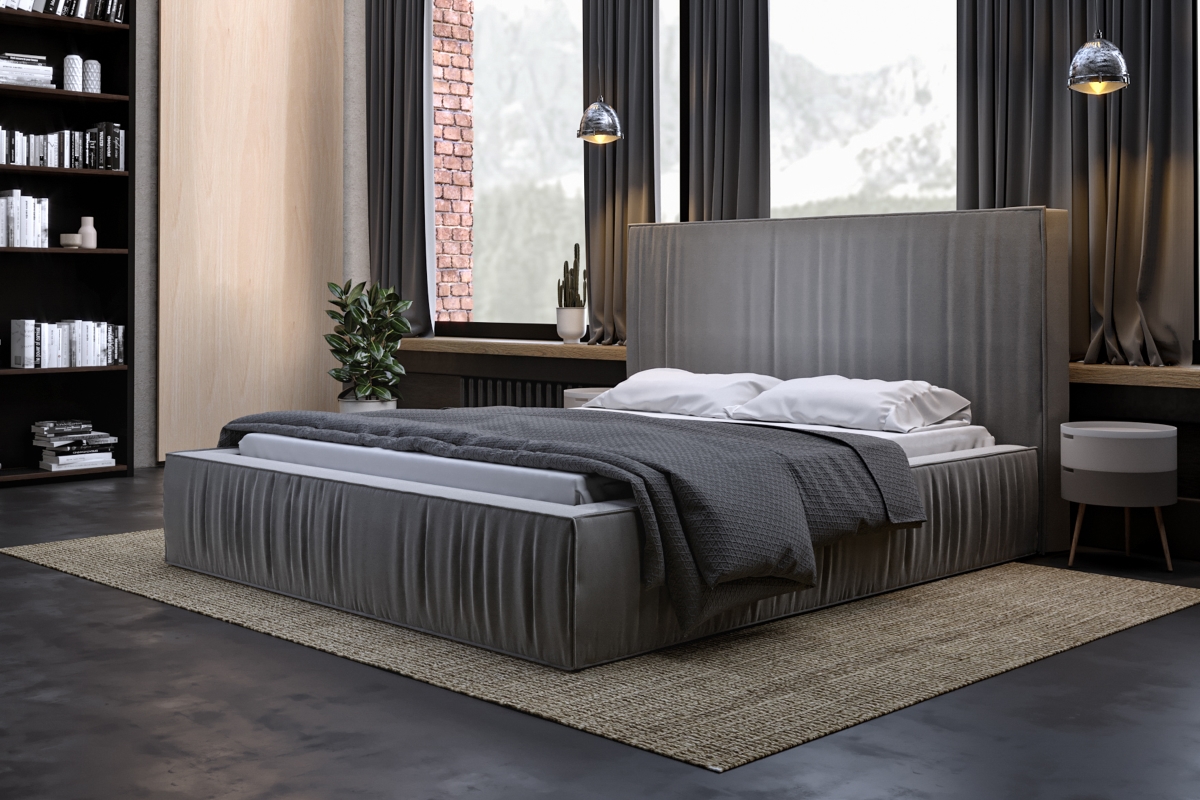 Łóżko tapicerowane o prostej, klasycznej konstrukcji, którego zagłówek oraz rama ubogacona efektownymi marszczeniami, tworzą ciekawą kompozycję. Doskonale sprawdzi się w dużych, przestronnych sypialniach, uszlachetniając je urodą prostej linii. Konstrukcja z płyty w obiciu z tkaniny meblowej, w szerokiej gamie kolorystycznej. Solidny korpus łóżka spoczywa na ślizgaczach umożliwiających przesuwanie mebla. Istnieje możliwość zastosowania pojemnika na pościel ze stelażem na ramie drewnianej lub metalowej. Poza standardowymi wymiarami, łóżko jest dostępne również w nietypowej długości i szerokości. Za dodatkową opłatą zagłówek można otapicerować w tylnej części. Dla uzyskania pełnego zadowolenia klienta zalecamy odpowiedni stelaż i materac z naszej oferty. Korpus oraz pokrowiec łóżka do samodzielnego montażu. Nałożenie materiału tapicerskiego na ramę umożliwiają zapięcia na rzepy.