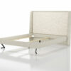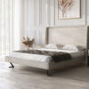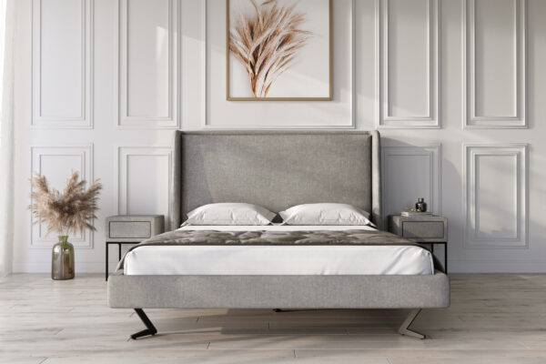 Poszukujesz do sypialni naprawdę oryginalnego i niepowtarzalnego łóżka? Ma ono niepowtarzalny wygląd, który przyciąga pożądliwy wzrok. Jest to doskonały przykład luksusowego mebla wykonanego w nowoczesny i atrakcyjny sposób. Już w pierwszych chwilach w oczy rzuca się kilka wyrazistych elementów. Przede wszystkim warto zwrócić uwagę na ten niepowtarzalny i ciekawie zaprojektowany zagłówek. Wezgłowie łóżka ma ciekawy kształt z wyraźnie zaznaczoną linią boczną, która sprawia, że łóżko mimo dużego rozmiaru nie wydaje się masywne i przytłaczające, tylko subtelne i zgrabne. Tkanina wezgłowia jest zjawiskowa i absolutnie niepowtarzalna, dostępna tylko w tym łóżku. Uwagę zwracają także ciekawie zaprojektowane nóżki w rozmiarze aż 18 cm, co zapewnia dużo wolnej przestrzeni pod łóżkiem. Rama łóżko jest zmontowane w całości, dzięki czemu zyskuje dodatkową stabilność. Poleca się rozmiary 180 x 200 lub mniejsze. Większe gabaryty mogą zostać wykonane na indywidualne zamówienia. Należy się upewnić, czy będzie możliwe wniesienie łóżka do sypialni.