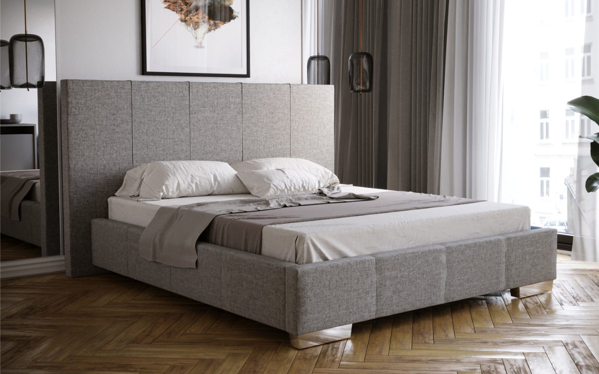 Nowoczesne, tapicerowane łóżko, którego prosta rama i zagłówek z efektownymi, pionowymi przeszyciami tworzą klasyczną kompozycję. Najokazalej prezentuje się w przestronnym wnętrzu. Konstrukcja z płyty w obiciu z tkaniny meblowej, w szerokiej gamie kolorystycznej. Stoi stabilnie na srebrnych plastikowych nóżkach. Opcjonalnie, za dopłatą, oferujemy klasyczne nogi drewniane w czarnym lub brązowym wybarwieniu. Możliwość zastosowania pojemnika na pościel ze stelażem na ramie drewnianej lub metalowej. Poza standardowymi wymiarami, łóżko jest dostępne również w nietypowej długości i szerokości. Istnieje możliwość otapicerowania tyłu zagłówka za dodatkową opłatą, po ustaleniach ze specjalistami w salonach meblowych. Dla uzyskania pełnego zadowolenia klienta zalecamy odpowiedni stelaż i materac z naszej oferty.