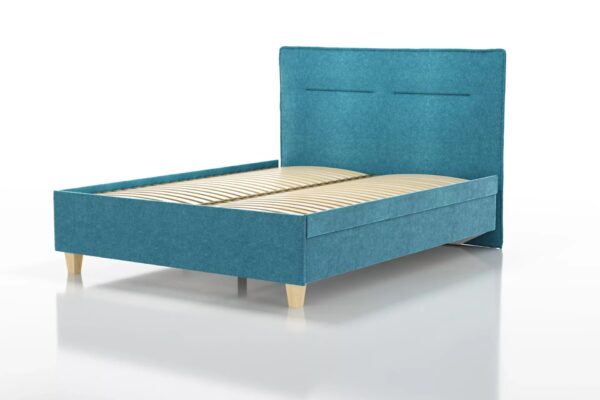 Eleganckie, tapicerowane łóżko o prostej konstrukcji doskonale sprawdzi się zarówno w tradycyjnej, jak i nowoczesnej sypialni. Daje nieograniczone możliwości aranżacji wnętrza. Konstrukcja z płyty w obiciu z tkaniny meblowej. Dostępne w szerokiej gamie kolorystycznej. Zagłówek z dwoma przeszyciami poziomymi. Zastosowano dwa pojemniki na pościel ze stelażami na ramie drewnianej z listwami giętymi, otwieranymi z boków. W cenie łóżka znajdują się dopełniające całość 12 centymetrowe, drewniane nogi. Poza standardowymi wymiarami, łóżko jest dostępne również w nietypowej szerokości i długości. Istnieje możliwość otapicerowania tyłu zagłówka za dodatkową opłatą, po ustaleniach ze specjalistami w salonach meblowych. Dla uzyskania pełnego zadowolenia klienta zalecamy materace z naszej oferty.