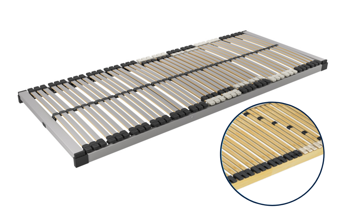 Solidna konstrukcja stelaży ma kluczowe znaczenie podczas użytkowania łóżka. To one odpowiadają za prawidłowe wsparcie dla ciała i zapewniają wentylację materaca. Stelaże do łóżka bez regulacji to standardowa oferta M&K Foam. Ten model został wykonany z drewna brzozowego, klejonego warstwowo. Posiada 28 listew osadzonych w uchwytach na ramie stelaża, wzmocnionych pasem dla lepszego rozłożenia ciężaru ciała. W części środkowej ma dodatkową regulację twardości. Stelaż należy stosować na listwach bocznych zainstalowanych wzdłuż ramy łóżka. Sprzedawany w kartonie do samodzielnego montażu. Istnieje możliwość zamówienia nietypowego rozmiaru stelaża.