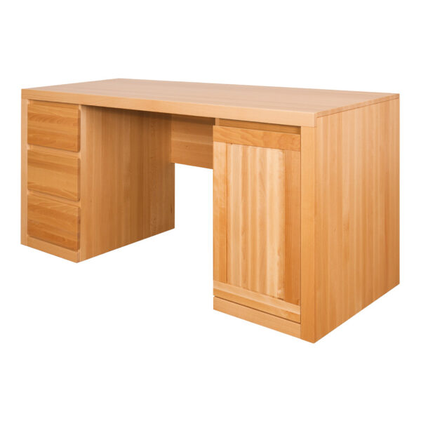 Bukowe biurko BR402 z kolekcji Vip zachwyca swoim prostym, a zarazem eleganckim wzornictwem. Naturalne usłojenie drewna bukowego podkreśla jego unikalny charakter, a ciepłe odcienie dodają przytulności każdemu pomieszczeniu. Dzięki starannie dopracowanym detalom, biurko stanowi stylowy element każdej przestrzeni. Wyposażona w trzy pojemne szuflady oraz przestronną szafkę biurko oferuje mnóstwo miejsca na przechowywanie dokumentów lub książek, pomagając utrzymać porządek na blacie. Drzwiczki, zdobione prostymi żłobieniami, przyciągają wzrok subtelnością i finezją. Brak uchwytów podkreśla minimalistyczny styl, nadając meblowi nowoczesny charakter. Biurko transportowane w całości, nie wymaga montażu.