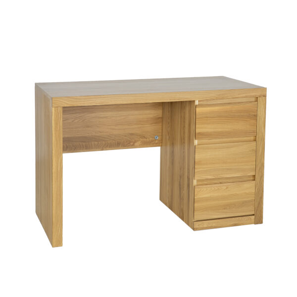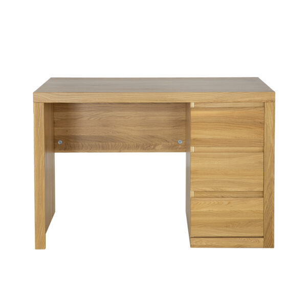 Dębowe biurko BR303 z kolekcji Vip zachwyca swoim prostym, a zarazem eleganckim wzornictwem. Naturalne usłojenie drewna dębowego podkreśla jego unikalny charakter, a ciepłe odcienie dodają przytulności każdemu pomieszczeniu. Dzięki starannie dopracowanym detalom, biurko stanowi stylowy element każdej przestrzeni. Wyposażona w trzy pojemne szuflady biurko oferuje mnóstwo miejsca na przechowywanie dokumentów czy książek, pomagając utrzymać porządek na blacie. Proste fronty i brak uchwytów podkreśla minimalistyczny styl, nadając meblowi nowoczesny charakter. Biurko transportowane w całości, nie wymaga montażu.