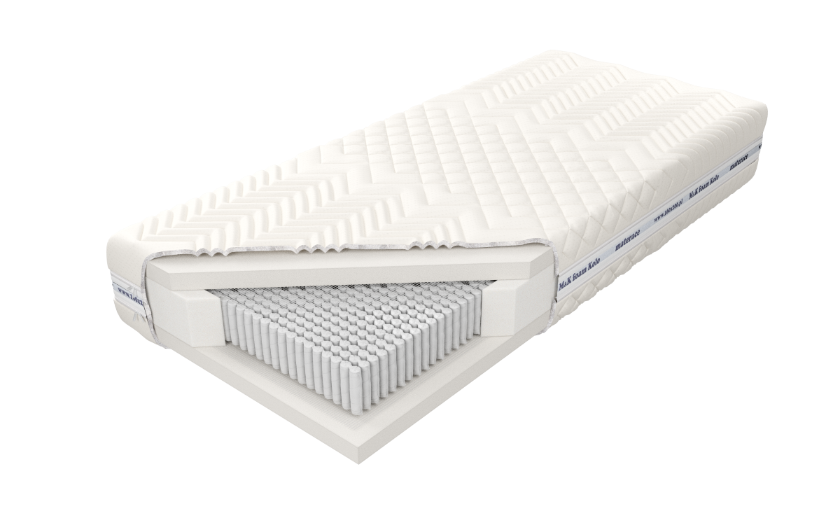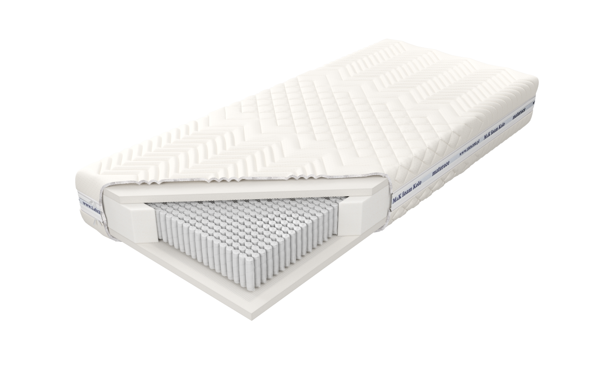 Materac o wysokości ok. 24 cm (w zależności od pokrowca) zbudowany ze sprężyn 2000S z wysokogatunkowego drutu, umieszczonych w pojedynczych kieszonkach o średnicy 25 mm. Ilość użytych sprężyn znacząco poprawia elastyczność i zwiększa punktowe podparcie ciała. Po obu stronach została użyta 5 cm warstwa pianki lateksoidalnej antygrzybicznej, antyroztoczowej i antybakteryjnej. Pianka ta cechuje się dużą odpornością na odkształcenia i przewiewnością. Zastosowanie zamka błyskawicznego, który umożliwia zdjęcie i wypranie pokrowca, znacząco ułatwia utrzymanie go w czystości.