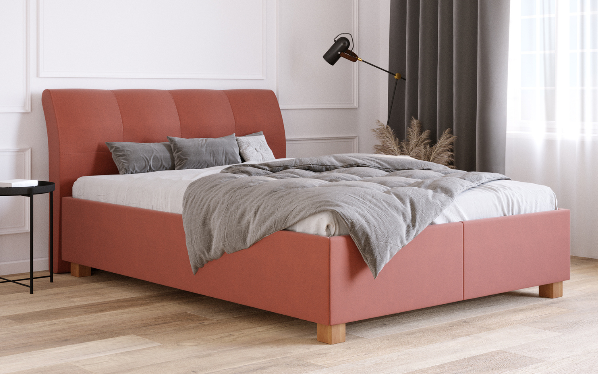 Model ECO01 ze stelażem metalowym na listwach giętych zamocowanych w elastycznych podwójnych uchwytach wyposażony jest w pojemnik na pościel. W korpusie są zamontowane siłowniki gazowe. Przystosowany do zamontowania zagłówka, z którym stworzy unikatowe łóżko według projektu klienta. Występuje w bogatej ofercie tkanin obiciowych. Wymaga skompletowania z wybranym rodzajem materaca M&K foam. Możliwość zamówienia korpusu na ślizgaczach lub pod nóżki. Za dodatkową opłatą istnieje możliwość zamówienia korpusu o nietypowej szerokości i długości, jak również dołożenia regulatorów twardości w stelażu.
