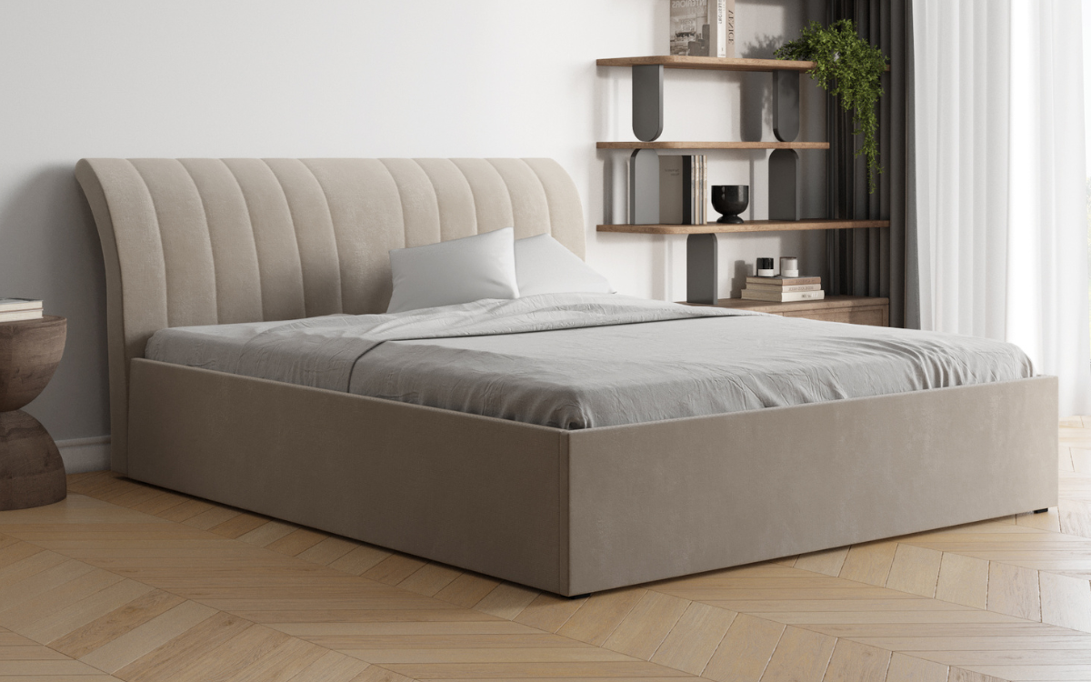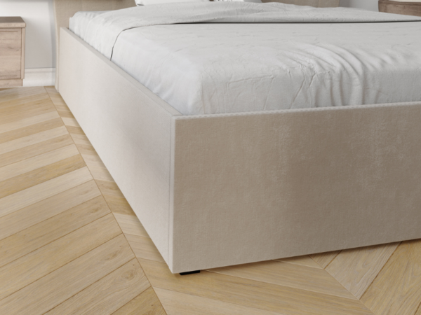 Model ECO03 ze stelażem metalowym na listwach giętych zamocowanych w elastycznych podwójnych uchwytach wyposażony jest w pojemnik na pościel. W korpusie są zamontowane siłowniki gazowe. Przystosowany do zamontowania zagłówka, z którym stworzy wyjątkowe łóżko według projektu klienta. W korpusie zastosowano efektowne przeszycia. Występuje w bogatej ofercie tkanin obiciowych. Wymaga skompletowania z wybranym rodzajem materaca M&K foam. Możliwość zamówienia korpusu na ślizgaczach lub pod nóżki. Za dodatkową opłatą istnieje możliwość zamówienia korpusu o nietypowej szerokości i długości, jak również dołożenia regulatorów twardości w stelażu.
