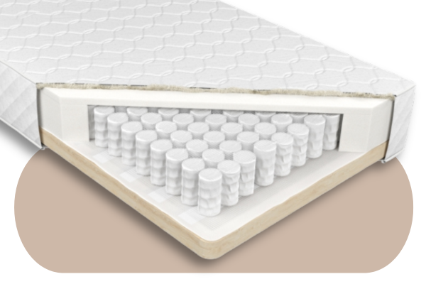 Materac na ramie drewnianej o wysokości około 23 cm. Wkład materaca stanowi sprężyna kieszeniowa zbudowana z wysokogatunkowego drutu, umieszczonego w pojedynczych, tkaninowych kieszeniach, oraz przekładka tapicerska połączona z 3 cm warstwą pianki poliuretanowej. Materac dostępny jest w wersji letniej – wyposażonej w antyalerginczą owatę, oraz lateksowe włosie końskie – które ma za zadanie pochłaniać i odprowadzać wilgoć z materaca, lub w wersji zimowej – posiadającej naturalną wełnę owczą, doskonale kumulującą ciepło.