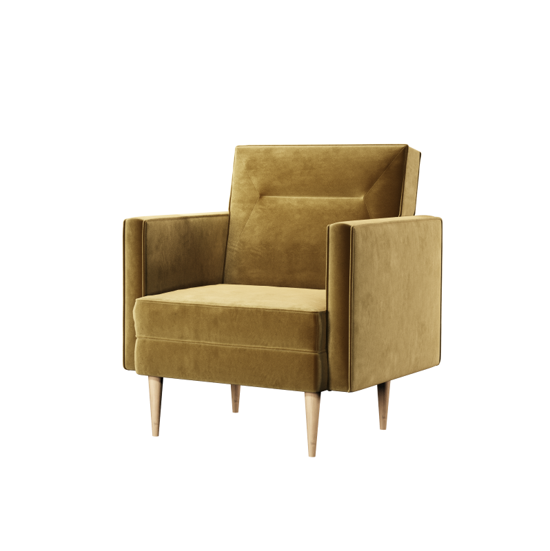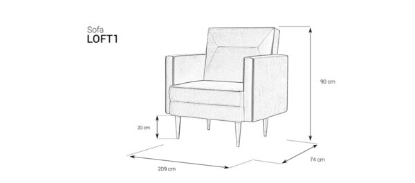 Jednoosobowa sofa o klasycznym wyglądzie, oparta na sprężynach falistych i piance wysokoelastycznej, dostępna w bogatej gamie tkanin. Delikatna dzięki wysmukłym nóżkom. Efektownie prezentuje się zarówno w małych jak i dużych wnętrzach o różnym charakterze i wystroju. Jest idealnym mariażem minimalizmu i designu. Łączy w sobie estetykę, funkcjonalność i wygodę.