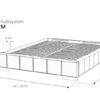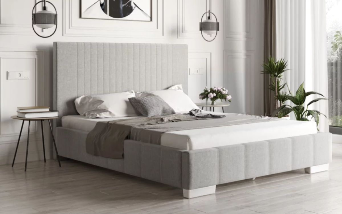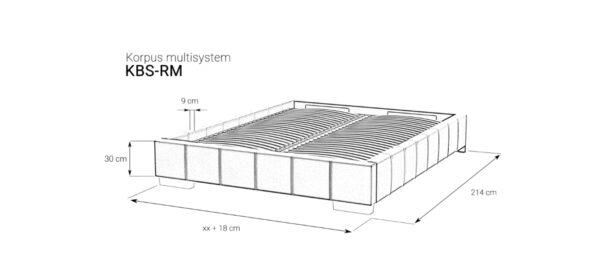 Model Korpus Boki Szerokie ze stelażem metalowym na listwach giętych zamocowanych w elastycznych podwójnych uchwytach, wyposażony jest w pojemnik na pościel. W korpusie są zamontowane siłowniki gazowe. Przystosowany do zamontowania zagłówka, z którym stworzy wyjątkowe łóżko według projektu klienta. Charakteryzuje się szerokimi bokami z efektownymi, pionowymi przeszyciami. Występuje w bogatej ofercie tkanin obiciowych. Wymaga skompletowania z wybranym rodzajem materaca M&K foam. Za dodatkową opłatą istnieje możliwość zamówienia korpusu o nietypowej szerokości i długości oraz nóg drewnianych w kolorze czarnym lub brązowym, jak również dołożenia regulatorów twardości w stelażu.