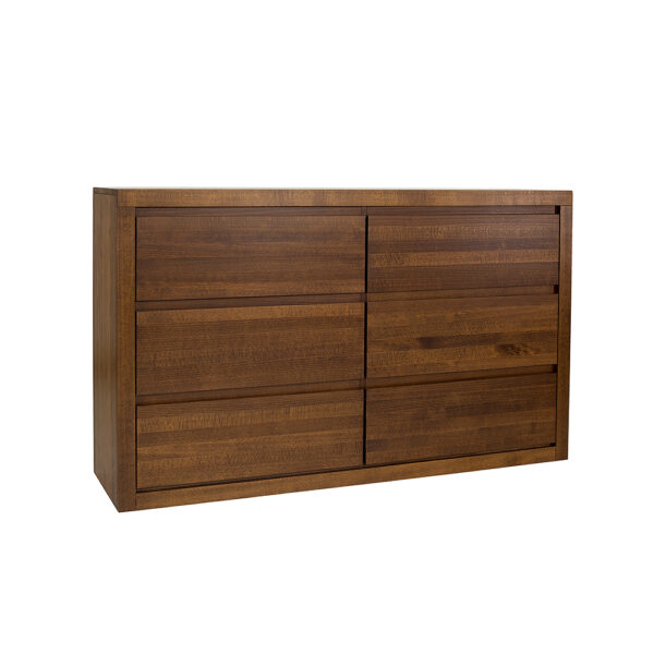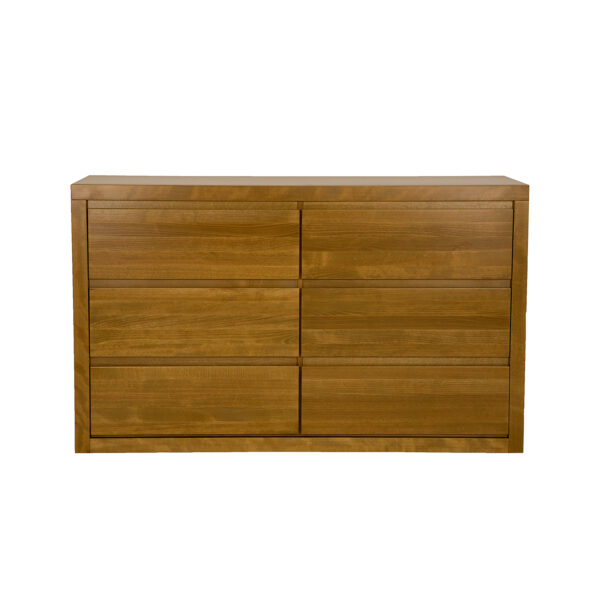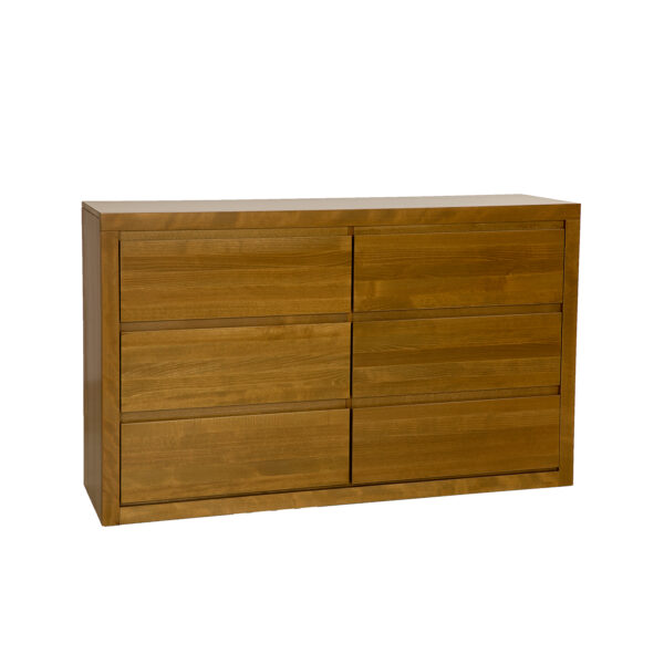 Bukowa komoda KD412 z kolekcji Vip charakteryzuje się klasyczną bryłą, która łączy w sobie elegancję i funkcjonalność. Naturalne usłojenie drewna dodaje jej ciepła i charakteru. Wyposażona w sześć pojemnych szuflad komoda oferuje mnóstwo miejsca na przechowywanie różnych przedmiotów, od ubrań po dokumenty. Brak uchwytów podkreśla minimalistyczny styl, nadając meblowi nowoczesny charakter. Komoda transportowana w całości, nie wymaga montażu.