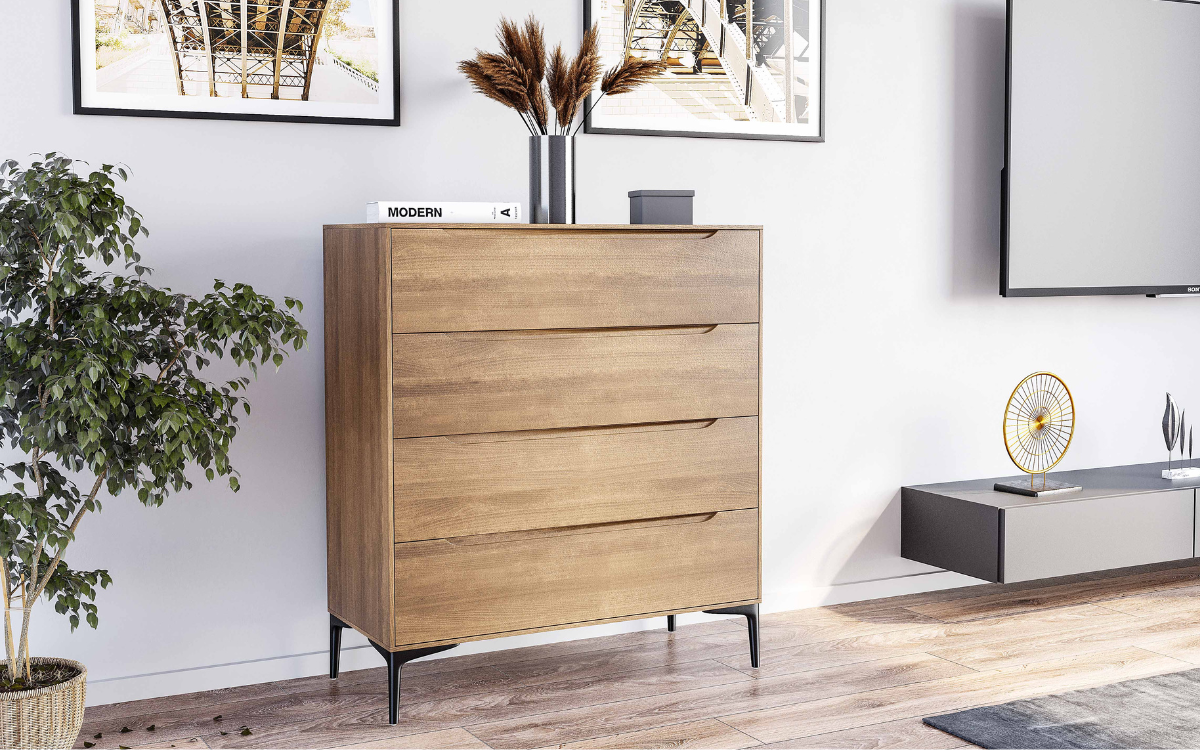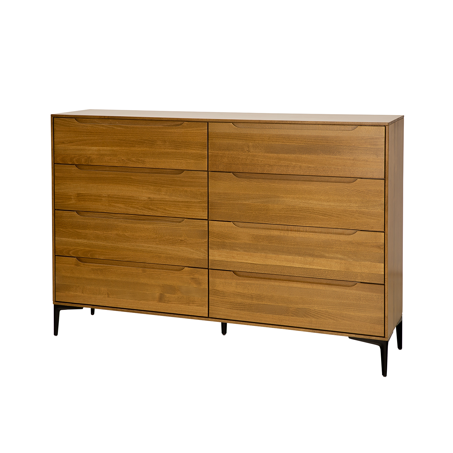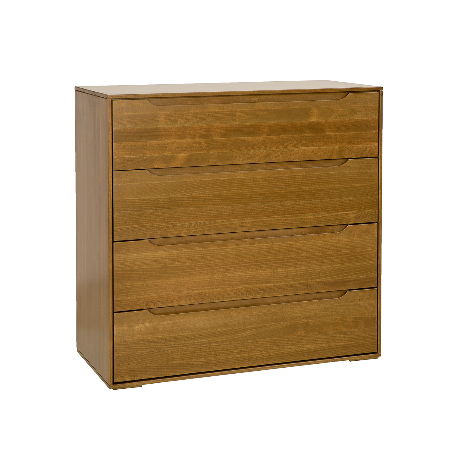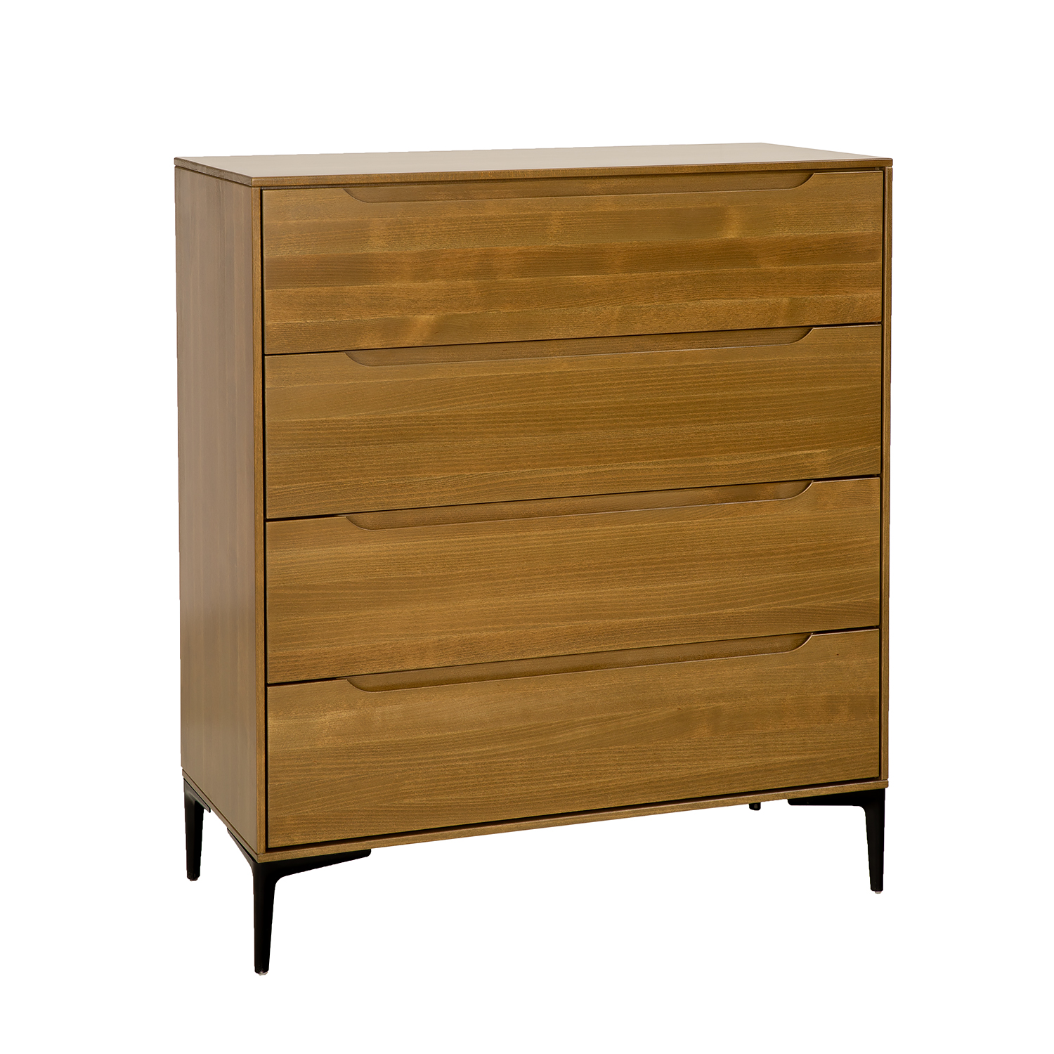 Bukowa komoda KD424 z kolekcji Modern to idealne połączenie funkcjonalności i nowoczesnego designu, które wzbogaci każdą sypialnię, salon czy jadalnię. Wykonana z najwyższej jakości litego drewna bukowego, które gwarantuje trwałość i elegancki, ponadczasowy wygląd. Wyposażona w cztery pojemne szuflady, zapewnia przestrzeń do przechowywania niezbędnych przedmiotów. Jej piękne bukowe fronty zdobią dekoracyjne podcięcia, które eliminują potrzebę uchwytów, nadając komodzie minimalistyczny i elegancki wygląd. W standardzie mebel osadzony został na niewielkich drewnianych nóżkach. Opcjonalnie istnieje możliwość wyposażenia komody w metalowe nogi, które dodają jej lekkości i unikalnego charakteru, jednocześnie ułatwiając adaptację do różnych stylów wnętrz. Komoda transportowana w całości, nie wymaga montażu.