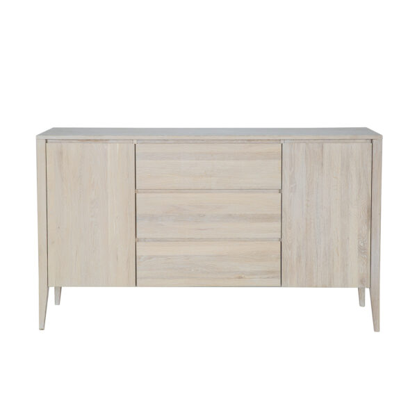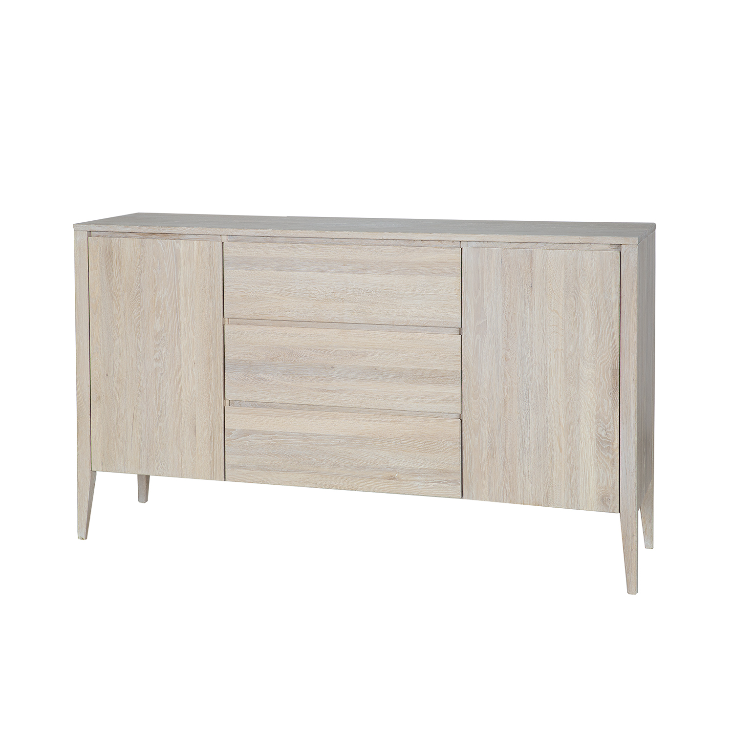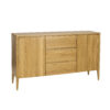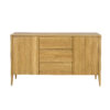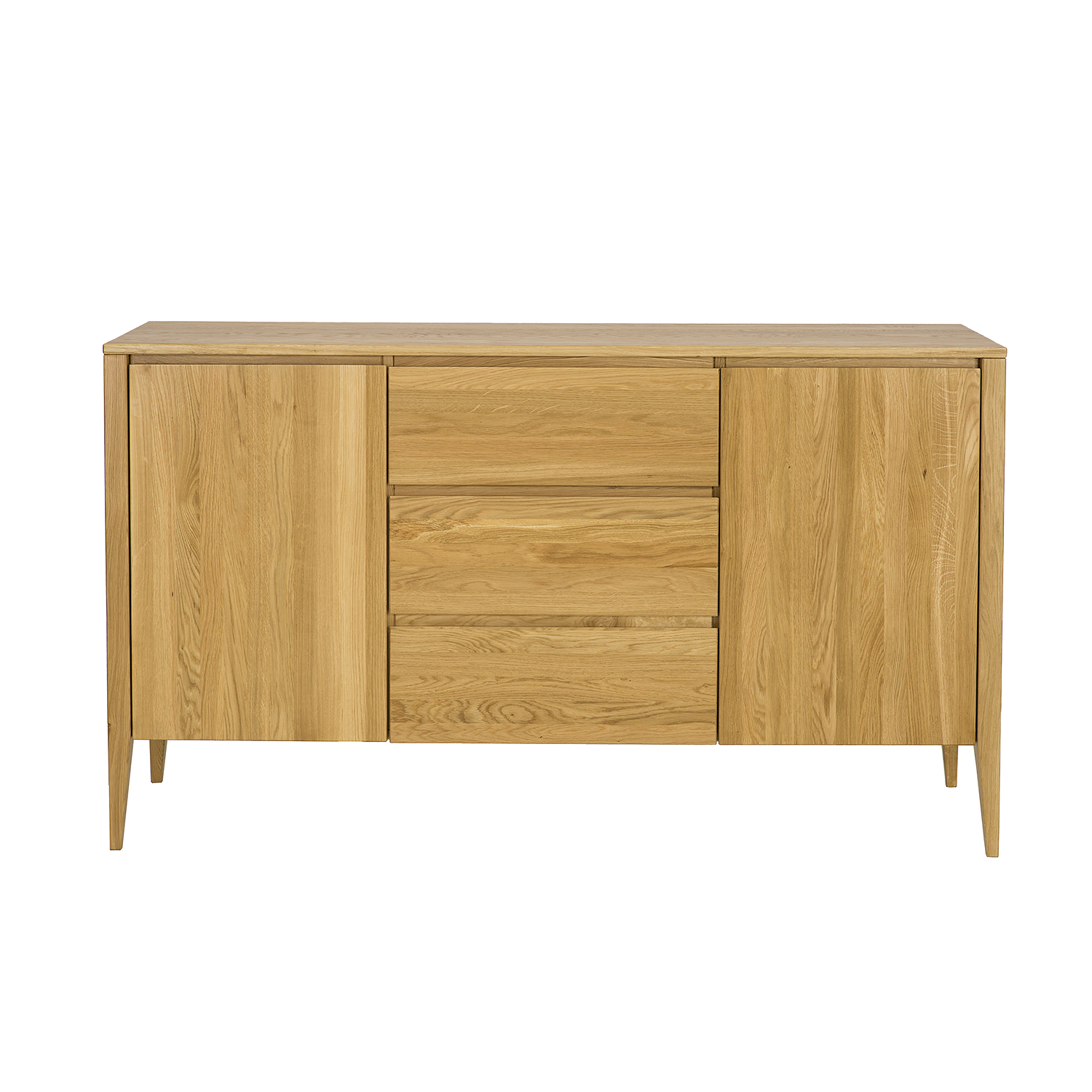 Dębowa komoda KD330 z kolekcji Retro to idealne połączenie funkcjonalności i estetyki, które wzbogaci każdą sypialnię, salon czy jadalnię. Wykonana z najwyższej jakości litego drewna dębowego, zapewnia nie tylko wytrzymałość, ale również elegancki wygląd, który pasuje do różnorodnych stylów wnętrzarskich. Wyposażona w zamykane szafki i trzy pojemne szuflady zapewniające przestrzeń do przechowywania niezbędnych przedmiotów. Ich piękne dębowe fronty zdobią subtelne, wycięte w drewnie uchwyty, tworzące nowoczesny system otwierania i zamykania. Wysokie, smukłe nogi nadają komodzie nowoczesnego wyglądu, a wnętrzu lekkości i przestronności, oferując praktyczne rozwiązania ułatwiające utrzymanie czystości. Komoda transportowana w całości, nie wymaga montażu.