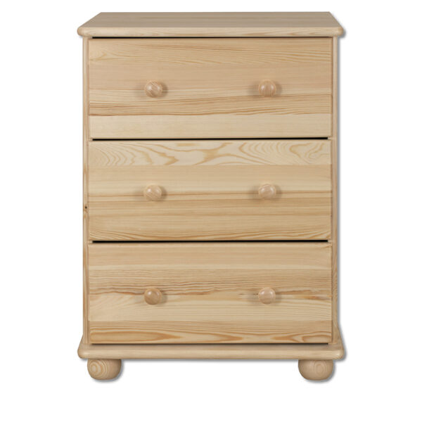 Sosnowa komoda KD107 dzięki swojej uniwersalności i praktycznym funkcjom, może pełnić różne role w zależności od potrzeb użytkownika. Świetnie sprawdzi się jako stolik nocny w sypialni, w salonie może pełnić funkcję poręcznego stolika pomocniczego. Możesz na niej postawić lampkę, ramki ze zdjęciami lub ulubione dekoracje. To idealny wybór dla osób ceniących sobie funkcjonalność połączoną z naturalnym pięknem drewna. Trzy obszerne szuflady oferują dużo miejsca do przechowywania, co sprawia, że komoda jest niezwykle praktyczna i funkcjonalna. Komoda transportowana w paczkach do montażu.