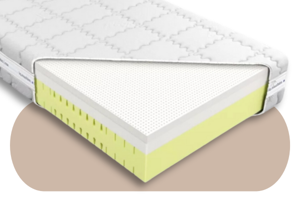 Komfortowy, dopasowany i zdrowy – taki właśnie jest – Kontur 50. Wkład materaca zbudowany jest z trzech połączonych ze sobą warstw: Górnej, którą stanowi 3,5 cm 100 % naturalnego lateksu Vita Talaly, o właściwościach antybakteryjnych i antygrzybicznych. Idealnie dopasowuję się do ciała, zapewniając optymalne podparcie i wygodę. Twardość: twardy (TH3) Środkową warstwę stanowi 5,5 cm pianki lateksoidalnej, dobrze przepuszczającej powietrze, zapobiegającej poceniu się. Dolna warstwa, czyli 14 cm wysokoelastycznej, konturowo wyciętej pianki, którą charakteryzuję wysoka trwałość. Poprzeczne kanały w piance zwiększają wentylację wewnętrzną materaca. Twardość H2. W utrzymaniu wysokiego poziomu higieny pozwala na zastosowanie zamka błyskawicznego, pozwalającego na zdjęcie i wypranie pokrowca.