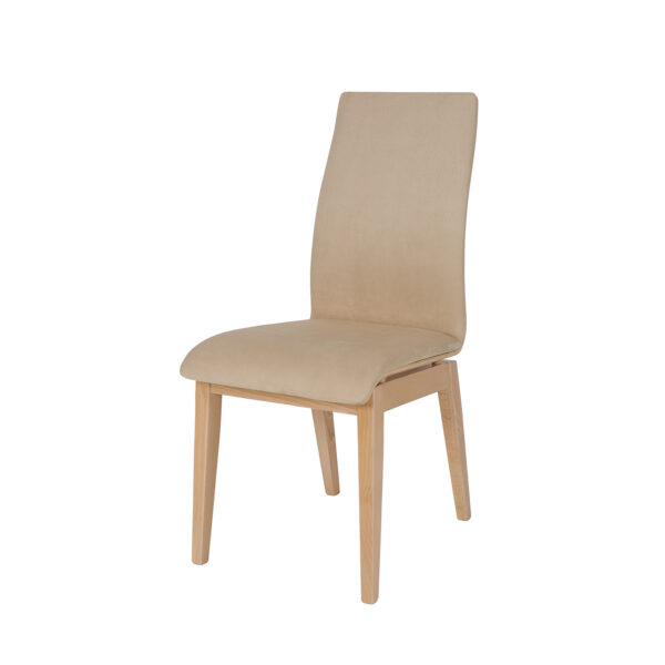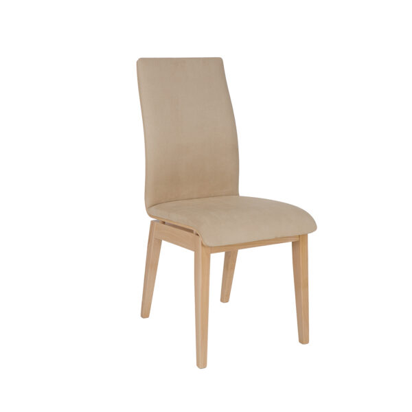 Krzesło bukowe KT176 z tapicerowanym oparciem oraz siedziskiem to wyjątkowe połączenie naturalnego piękna drewna i komfortu, jaki daje miękkie obicie. Jego nowoczesna, minimalistyczna forma sprawia, że doskonale wpisuje się w różnorodne aranżacje wnętrz, od klasycznych po industrialne. Możliwość wyboru materiału obiciowego pozwala na dopasowanie krzesła do indywidualnych preferencji i stylu. Ergonomicznie zaprojektowane, lekko wyprofilowane oparcie i siedzisko zapewniają komfort użytkowania, co jest szczególnie ważne podczas długotrwałego siedzenia. Wyeksponowane w tylnej części oparcia, naturalne usłojenie drewna bukowego stanie się ozdobą każdego wnętrza. Idealne do stołu w jadalni, salonie czy kuchni. Może służyć jako dodatkowe siedzisko w salonie podczas spotkań z przyjaciółmi lub jako krzesło do biurka. Krzesło transportowane w całości, nie wymaga montażu.