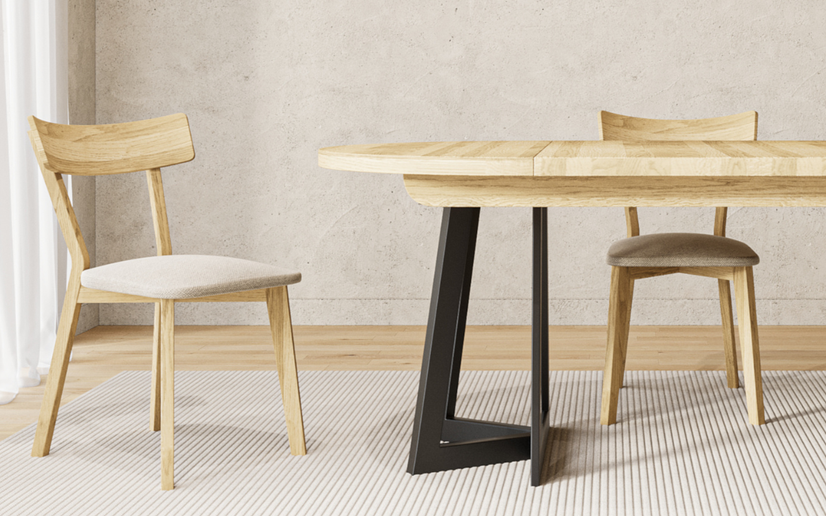 Krzesło dębowe KT376 z tapicerowanym oparciem oraz siedziskiem to wyjątkowe połączenie naturalnego piękna drewna i komfortu, jaki daje miękkie obicie. Jego nowoczesna, minimalistyczna forma sprawia, że doskonale wpisuje się w różnorodne aranżacje wnętrz, od klasycznych po industrialne. Możliwość wyboru materiału obiciowego pozwala na dopasowanie krzesła do indywidualnych preferencji i stylu. Ergonomicznie zaprojektowane, lekko wyprofilowane oparcie i siedzisko zapewniają komfort użytkowania, co jest szczególnie ważne podczas długotrwałego siedzenia. Wyeksponowane w tylnej części oparcia, naturalne usłojenie drewna dębowego stanie się ozdobą każdego wnętrza. Idealne do stołu w jadalni, salonie czy kuchni. Może służyć jako dodatkowe siedzisko w salonie podczas spotkań z przyjaciółmi lub jako krzesło do biurka. Krzesło transportowane w całości, nie wymaga montażu.