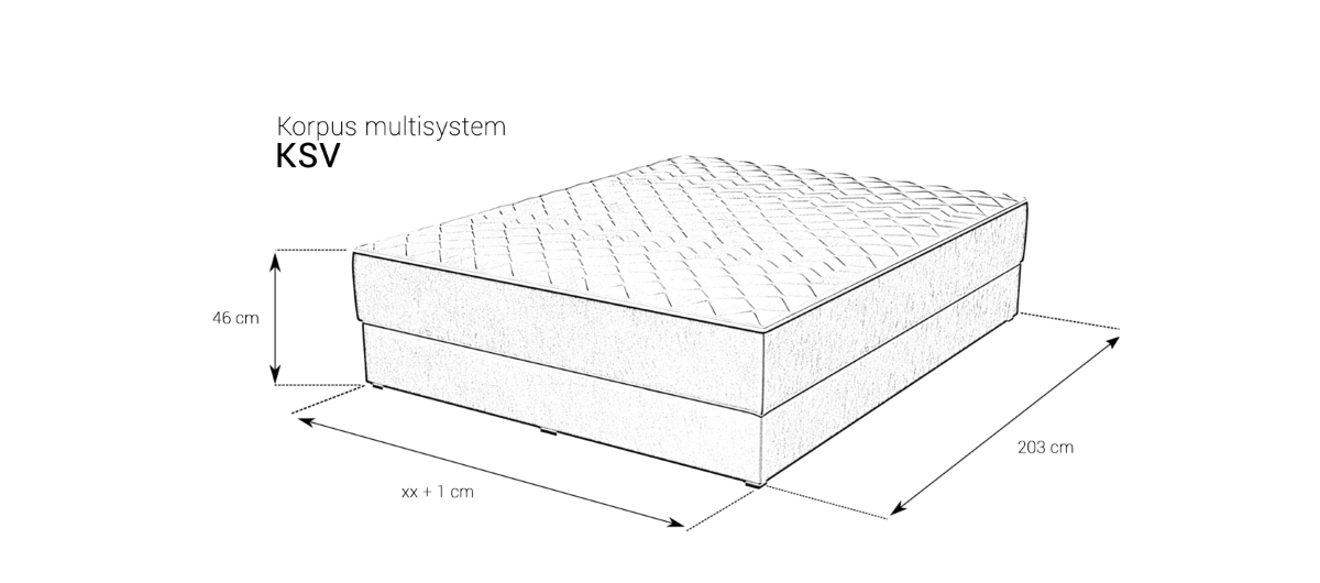 Model Korpus Skrzynia Venus z podnoszonym materacem i z pojemnikiem na pościel może stanowić samodzielne łóżko lub po zamontowaniu zagłówka stworzyć unikatowy zestaw według projektu klienta. Konstrukcję korpusu stanowi podnoszony materac zbudowany ze sprężyn kieszonkowych multipocket obłożonych od góry warstwą elastycznego lateksu, na ramie z listwami giętymi. Materac występuje w tkaninie Tencel wyposażonej w zamek błyskawiczny umożliwiający zdjęcie i wypranie pokrowca w temperaturze do 40°C. Model dostępny jest w bogatej ofercie tkanin obiciowych. Możliwość skompletowania z wybranym zagłówkiem z serii Multisystem M&K foam. Możliwość zamówienia korpusu na ślizgaczach lub pod nóżki. Za dodatkową dopłatą istnieje możliwość zamówienia korpusu o nietypowej długości i szerokości.