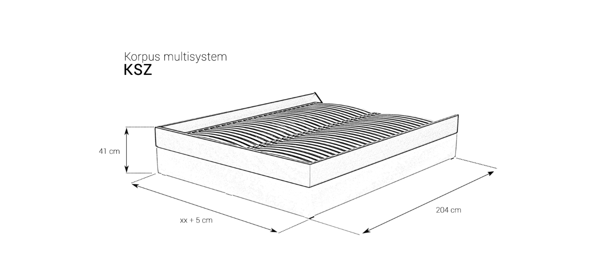 Model Korpus Skrzynia Zmontowana ze stelażem i z pojemnikiem na pościel stanowi samodzielne łóżko lub jest podstawą do zamontowania zagłówka, z którym stworzy unikatowe łóżko według projektu klienta. Występuje w bogatej ofercie tkanin obiciowych. Wymaga skompletowania z wybranym rodzajem materaca M&K foam. Za dodatkową dopłatą istnieje możliwość zamówienia korpusu o nietypowej długości oraz szerokości.