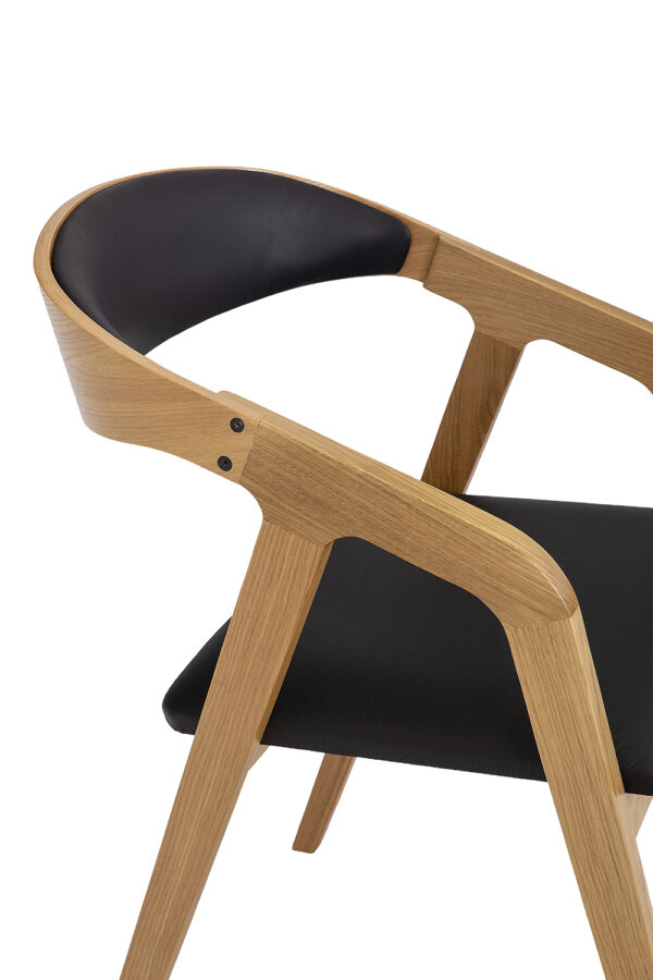 Nowoczesne krzesło KT185 wykonane z drewna bukowego to nie tylko elegancja i funkcjonalność, ale także innowacyjność w projektowaniu. Jego starannie dopracowana, innowacyjna forma sprawia, że doskonale wpisuje się w różnorodne aranżacje wnętrz, od klasycznych po industrialne. Możliwość wyboru materiału obiciowego pozwala na dopasowanie krzesła do indywidualnych preferencji i stylu. Ergonomicznie zaprojektowane, gięte oparcie, podłokietniki i miękkie, tapicerowane siedzisko zapewniają komfort użytkowania, co jest szczególnie ważne podczas długotrwałego siedzenia. Idealne do stołu w jadalni, salonie czy kuchni dodając im charakteru i elegancji. Może służyć jako dodatkowe siedzisko w salonie podczas spotkań z przyjaciółmi lub jako krzesło do biurka. Krzesło transportowane w całości, nie wymaga montażu.