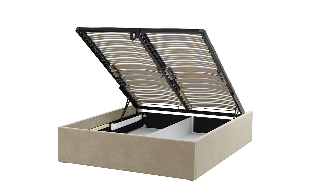 Model Korpus Wysoki ze stelażem metalowym na listwach giętych zamocowanych w elastycznych potrójnych uchwytach. Wyposażony jest w pojemnik na pościel. W korpusie są zamontowane siłowniki gazowe. Przystosowany do zamontowania zagłówka, z którym stworzy unikalne łóżko według projektu klienta. Charakteryzuje się wysokimi bokami. Występuje w bogatej ofercie tkanin obiciowych. Wymaga skompletowania z wybranym rodzajem materaca M&K foam. Możliwość zamówienia korpusu na ślizgaczach lub pod nóżki. Za dodatkową opłatą istnieje możliwość zamówienia korpusu o nietypowej szerokości i długości.