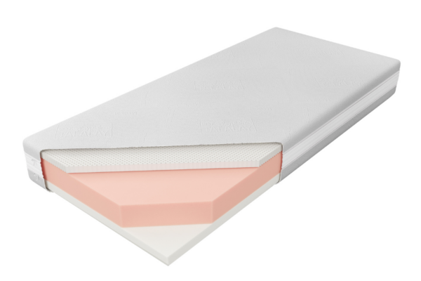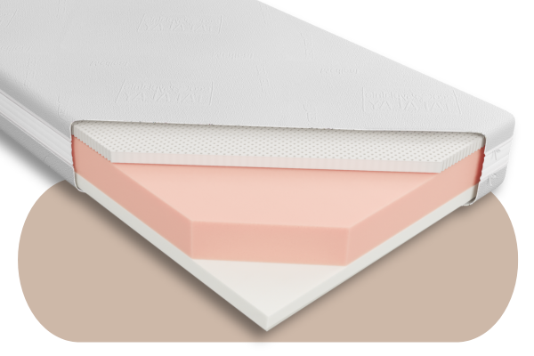 Materac o wysokości ok. 20 cm wykonany w górnej warstwie z 3,5 cm warstwy naturalnego lateksu Talalay Embrace łączącego zalety lateksu Talalay i pianki termoelastycznej. Posiada właściwości regulujące temperaturę, idealnie dopasowuje się i amortyzuje ciało w spoczynku, zapewnia wysoką cyrkulację typową dla otwartokomórkowej struktury. Z drugiej strony materaca umieszczono rewolucyjną, antybakteryjną piankę termoelastyczną 40 mm, która dopasowuje się pod wpływem temperatury i ciężaru ciała. Rdzeń materaca stanowi miękka i sprężysta pianka Komfort Soft 12 cm. Utrzymanie wysokiego poziomu czystości zapewnia zamek błyskawiczny pozwalający na zdjęcie pokrowca.