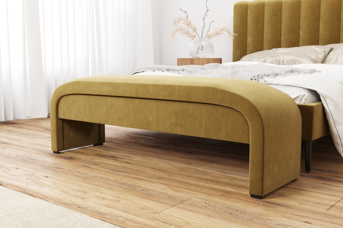 Ława jest eleganckim i praktycznym dodatkiem do każdej sypialni. Daje nieograniczone możliwości aranżacyjne. Jest wykonana z płyty i materiału obiciowego dostępnego w bogatym wzornictwie. Jest zmontowana w całości, posiada zaokrąglone brzegi. Jej atutem jest dyskretna, funkcjonalna szuflada na prowadnicach. Dobrze komponuje się z łóżkami tapicerowanymi oraz multisystemem. Jej nietypowa, pozbawiona kątów forma sprawia, że stanowi oryginalny element dekoracyjny sypialni. Może stanowić samodzielny mebel. Dodaje wnętrzu niebanalnego charakteru.