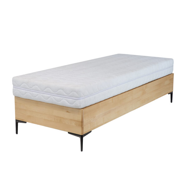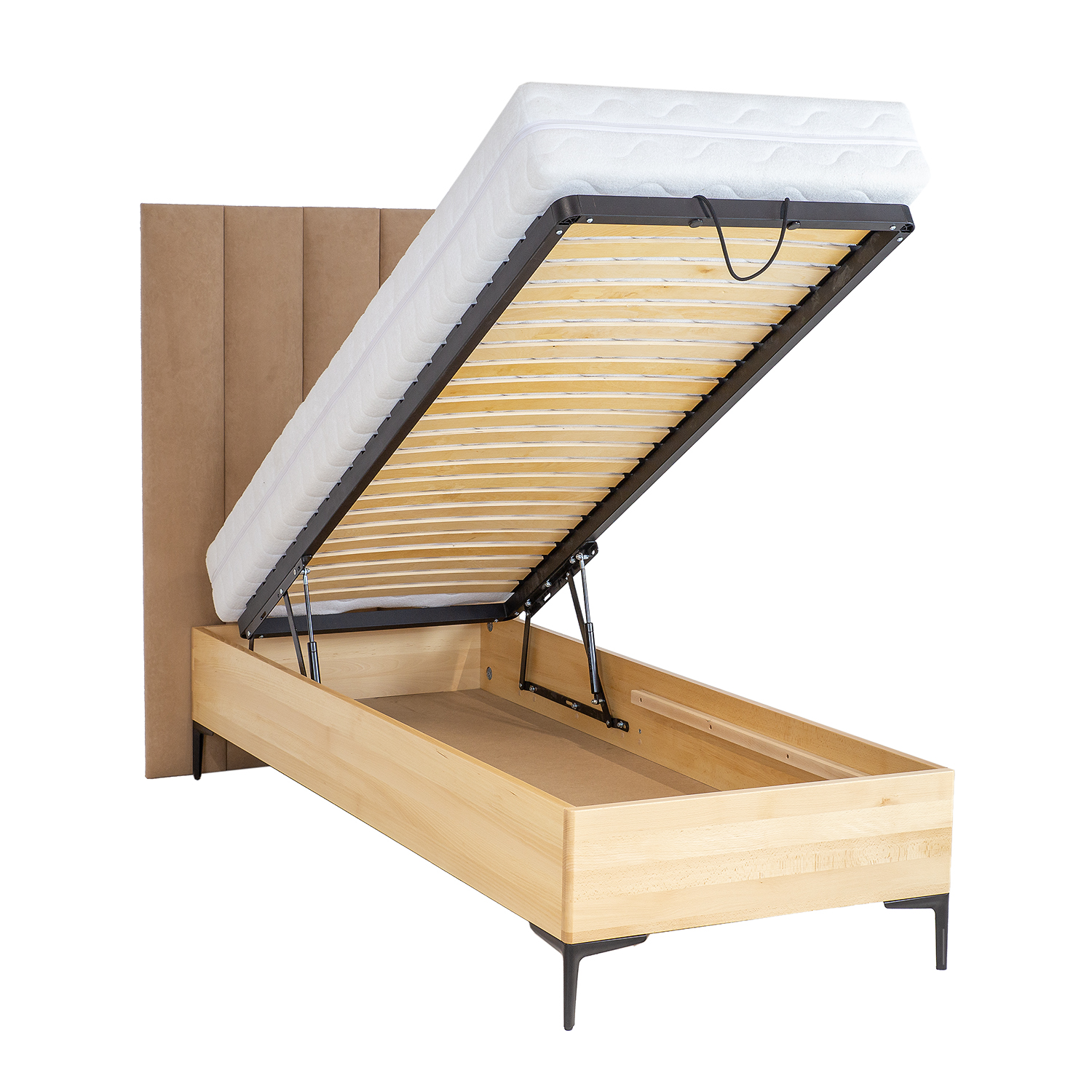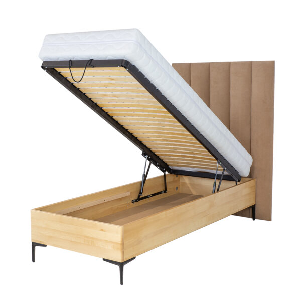 Bukowe łóżko kontynentalne LK185 BOX z kolekcji Modern to doskonałe połączenie wygody, stylu i funkcjonalności. Wykonane z najwyższej jakości drewna bukowego, oferuje nie tylko elegancki wygląd, ale także trwałość i komfort użytkowania. Stylowe metalowe nóżki dodają łóżku nowoczesnego charakteru i sprawiają, że wygląda lekko i elegancko. Pojemnik pod łóżkiem oferuje dużą przestrzeń do przechowywania pościeli czy poduszek, pomagając w utrzymaniu porządku. Łóżko LK185 Box idealnie wpasuje się w każde nowoczesne wnętrze sypialni. Jego minimalistyczny design i praktyczne rozwiązania czynią je doskonałym wyborem dla osób, które cenią sobie ergonomię połączoną z estetyką.