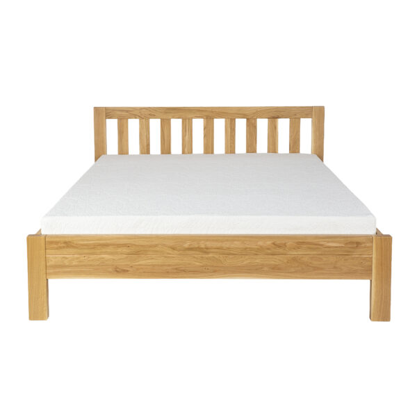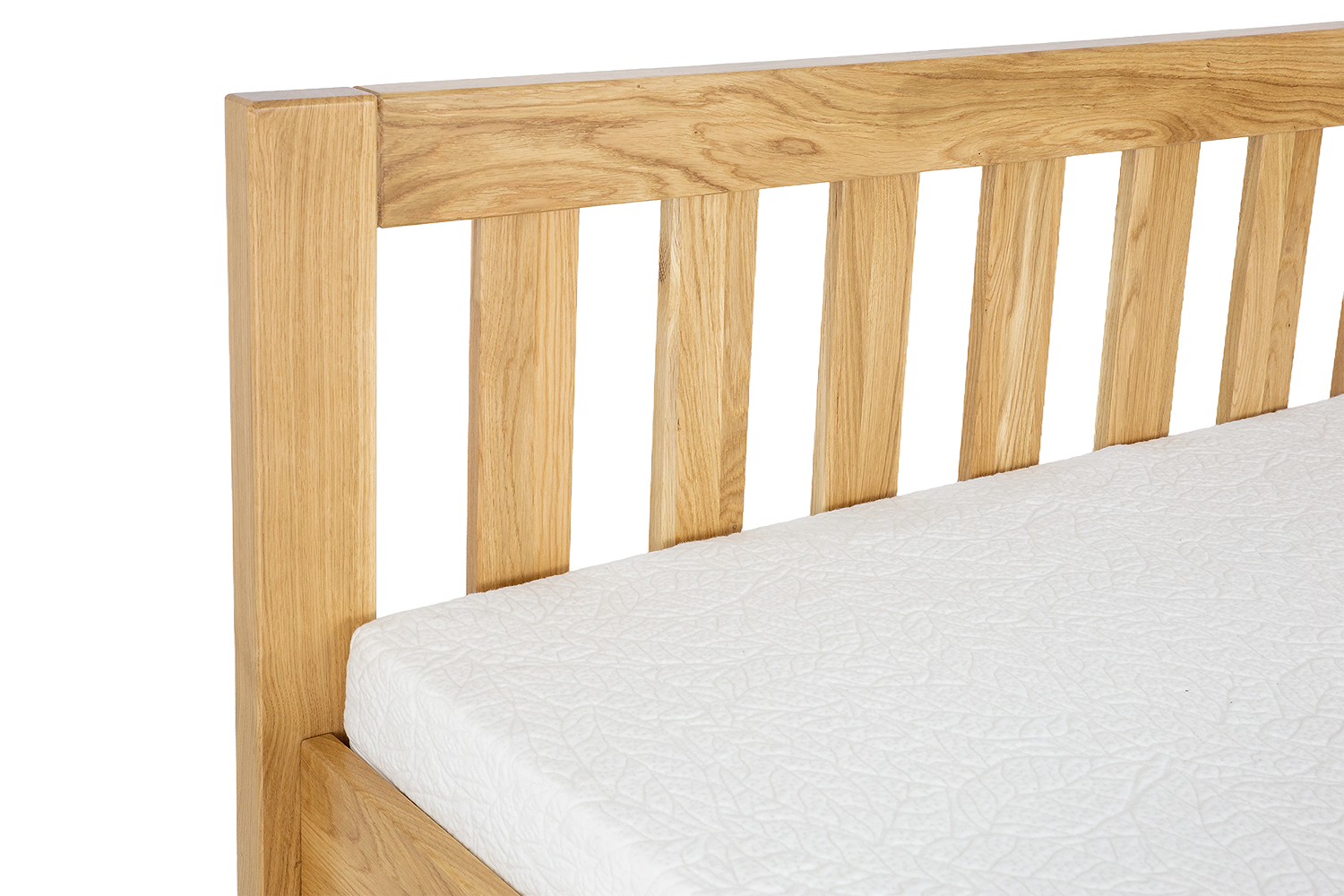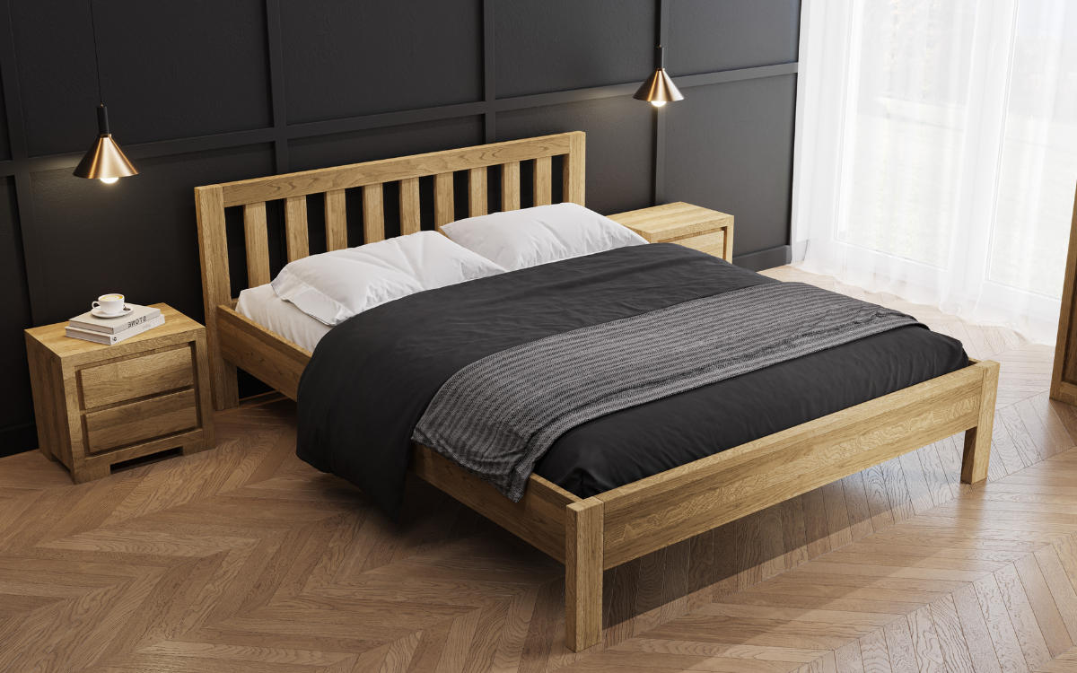 Łóżko dębowe LK303 to doskonały wybór dla osób ceniących sobie zarówno styl, jak i funkcjonalność. Wykonane z najwyższej jakości drewna dębowego, które charakteryzuje się nie tylko trwałością, ale także szlachetnym usłojeniem, nadającym sypialni naturalnej elegancji. Ażurowy zagłówek z pionowych szczebelek to zarówno ozdoba jak i praktyczne rozwiązanie, które nadaje lekkości konstrukcji. Łóżko LK303 łączy w sobie komfort i estetykę przestrzeni sypialnianej z eleganckim designem.