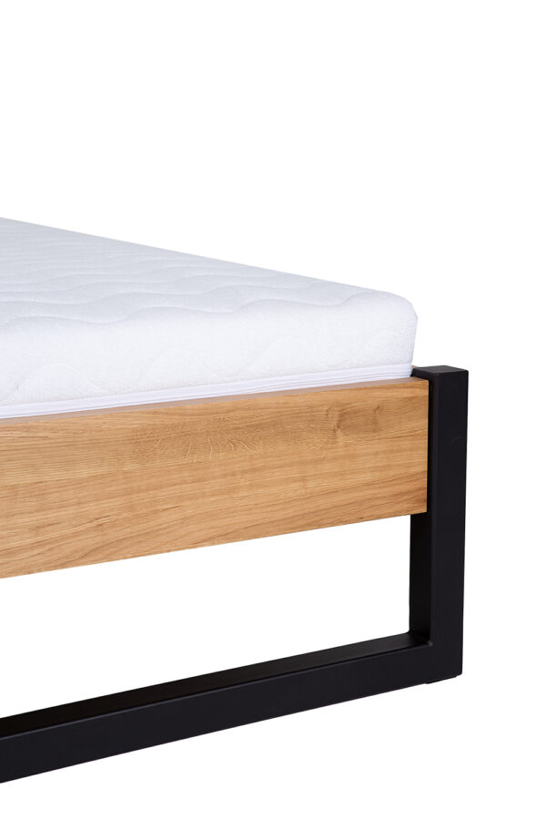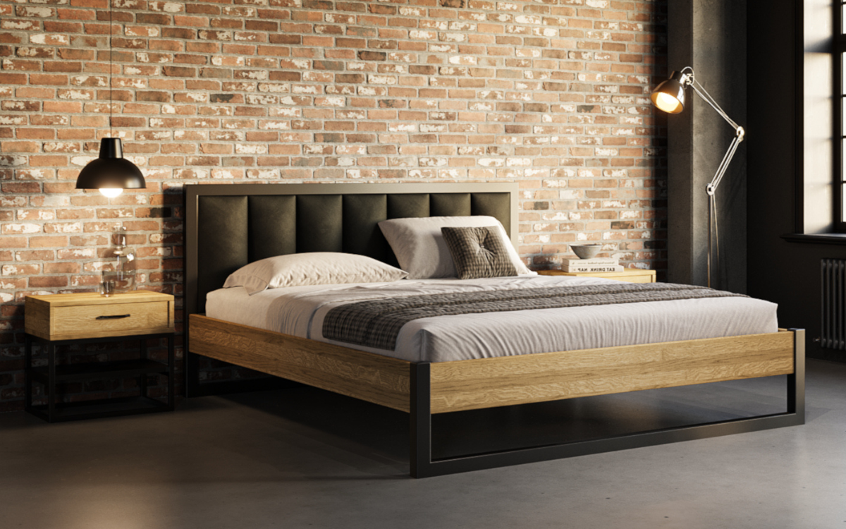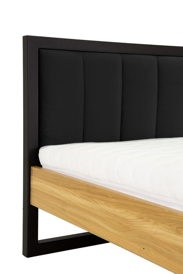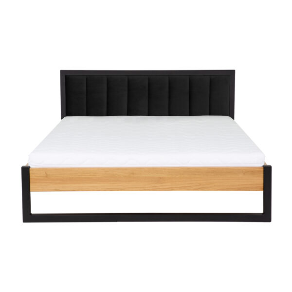 Łóżko LK372 z kolekcji Metal to doskonały przykład nowoczesnego designu, który łączy w sobie ciepło naturalnego drewna, przytulność mebla tapicerowanego i surowość czarnego metalu. To wyjątkowe zestawienie materiałów sprawia, że łóżko nie tylko wygląda imponująco, ale także oferuje niezwykłą wytrzymałość. Miękki, tapicerowany zagłówek podkreśla jego elegancki wygląd oraz zapewnia komfort i wsparcie podczas odpoczynku. Łóżko jest niezwykle solidne dzięki stalowym nogą, która gwarantuje bezpieczeństwo i trwałość użytkowania, a zarazem nadają lekkości całe konstrukcji.