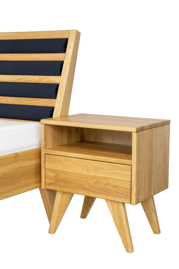 Łóżko LK302 z tapicerowanym, lekko wygiętym zagłówkiem to idealne rozwiązanie dla miłośników prostoty i elegancji. Jego nowoczesna forma łączy w sobie funkcjonalność oraz estetykę, tworząc harmonijną całość, która doskonale wpisuje się w różnorodne style aranżacyjne. Wykonane z najwyższej jakości litego drewna dębowego, łóżko zachwyca solidnością i estetyką, które przetrwają próbę czasu. Tapicerowany zagłówek wykonany z wysokiej jakości tkanin, dostępnych szerokiej gamie kolorów i struktur, pozwala na dopasowanie łóżka do indywidualnych preferencji. Jego unikalny styl podkreślają oryginalne nogi ułatwiające utrzymanie czystości oraz nadające mu nowoczesnego charakteru. Łóżko LK301 to doskonały wybór dla tych, którzy pragną połączyć funkcjonalność z estetyką, tworząc w swojej sypialni przestrzeń pełną komfortu i stylu.