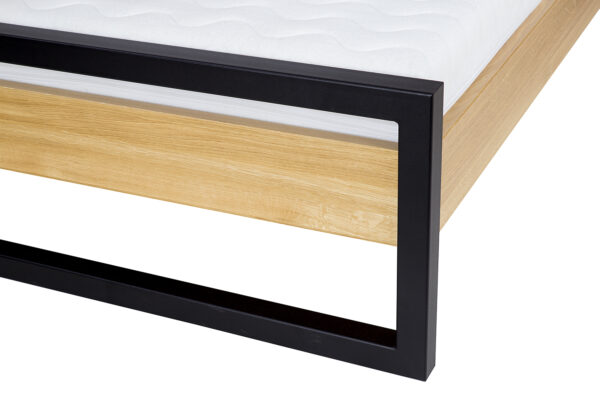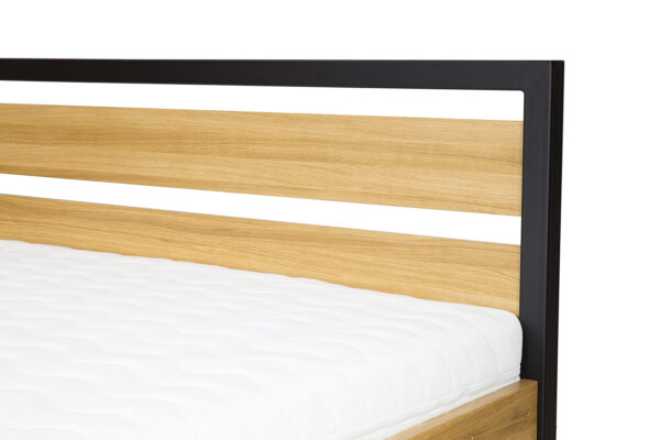 Łóżko LK371 z kolekcji Metal to doskonały przykład nowoczesnego designu, który łączy w sobie ciepło naturalnego drewna i surowość czarnego metalu. To wyjątkowe zestawienie materiałów sprawia, że łóżko nie tylko wygląda imponująco, ale także oferuje niezwykłą wytrzymałość. Ażurowy, minimalistyczny zagłówek podkreśla jego elegancki wygląd oraz zapewnia komfort i wsparcie podczas odpoczynku. Łóżko jest niezwykle solidne dzięki stalowym nogą, która gwarantuje bezpieczeństwo i trwałość użytkowania, a zarazem nadają lekkości całe konstrukcji.