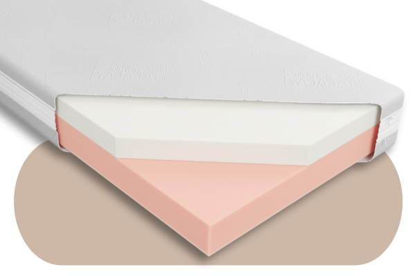 Materac o wysokości ok. 22 cm zbudowany jest z 14 cm warstwy pianki wysokoelastycznej Komfort Soft o zwiększonej gęstości i sprężystości, dzięki której produkt dopasowuje się do kształtu ciała, idealnie je podpierając, połączonej z 8 cm warstwą pianki termoelastycznej o dużej gęstości, która pod wpływem temperatury idealnie dopasowuje się do kształtu ciała. Pianka ta reaguje na temperaturę i ciężar ciała, jest antybakteryjna i nie pozwala na rozwój roztoczy. Staje się bardziej miękka w miejscu, gdzie ciało się styka z powierzchnią materaca. Utrzymanie wysokiego poziomu czystości zapewnia zamek błyskawiczny umożliwiający zdjęcie pokrowca.