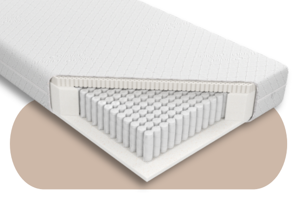Materac o wysokości ok. 20 cm (w zależności od pokrowca) zbudowany ze sprężyn 1000S z wysokogatunkowego drutu, umieszczonych w pojedynczych kieszonkach o średnicy 39 mm. Z jednej strony materaca znajduje się 3,5 cm warstwa naturalnego lateksu Talalay o twardości H2, produkowanego na bazie naturalnego mleczka kauczukowego, o otwartokomórkowej strukturze sprzyjającej doskonałej wentylacji i cyrkulacji powietrza. Zapewnia optymalne podparcie wpływające na komfort wypoczynku. Z drugiej strony użyta została 2 cm warstwa wytrzymałej, nie odkształcającej się, pianki poliuretanowej. Zastosowana obustronnie siatka tapicerska wzmacnia konstrukcję materaca i zwiększa jego wentylację. Wykorzystanie zamka błyskawicznego, który umożliwia zdjęcie i wypranie pokrowca, znacząco ułatwia utrzymanie go w czystości. Niektóre pokrowce pikowane są 200g / m2, upewnij się u sprzedawcy przed zakupem, jaką gramaturę ma wybrany pokrowiec.