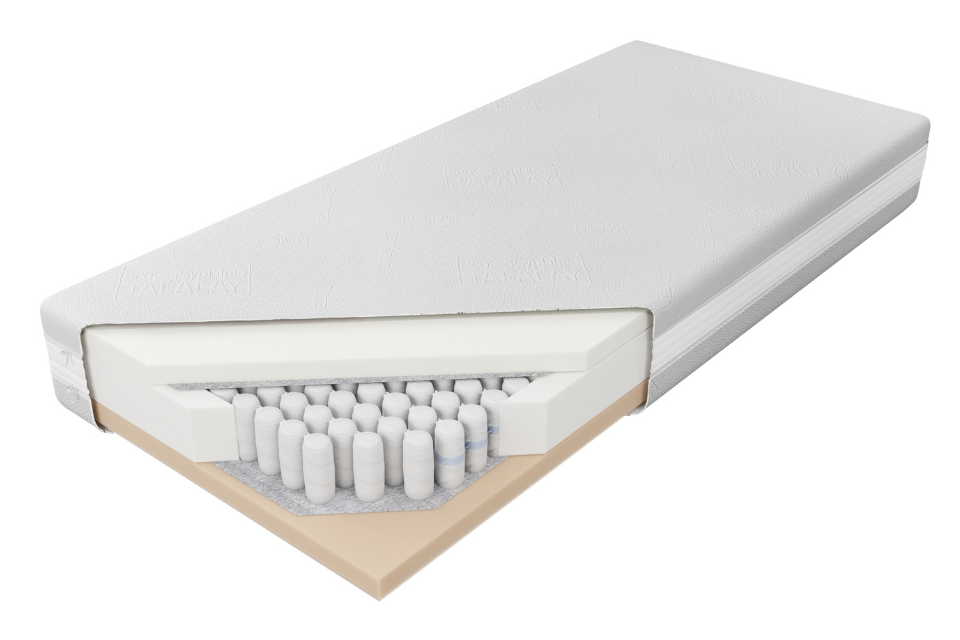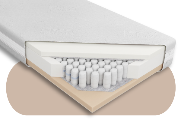 Materac o wysokości ok. 22 cm (w zależności od pokrowca) zbudowany ze sprężyn Pocket 7P z wysokogatunkowego drutu o twardości H3, umieszczonych w pojedynczych kieszonkach o średnicy 58 mm zwiększających elastyczność oraz punktowe podparcie dla kręgosłupa. Siedem stref twardości utrzymuje poszczególne części ciała. Z jednej strony materaca została użyta 4,5 cm warstwa pianki termoelastycznej, idealnie dopasowującej się pod wpływem temperatury do kształtu spoczywającego ciała, zapewniając tym samym wyjątkowy komfort snu. Z drugiej strony zastosowano również 4 cm warstwę wysokoelastycznej pianki Kaltschaum o twardości H2. Obustronnie użyta została przekładka tapicerska, która doskonale izoluje, zwiększa twardość i wydłuża żywotność produktu. Materac jest uniwersalny, korzystanie z każdej ze stron wiąże się z innymi doznaniami podczas snu. Wykorzystanie zamka błyskawicznego, który umożliwia zdjęcie i wypranie pokrowca, znacząco ułatwia utrzymanie go w czystości.