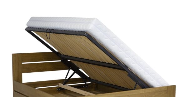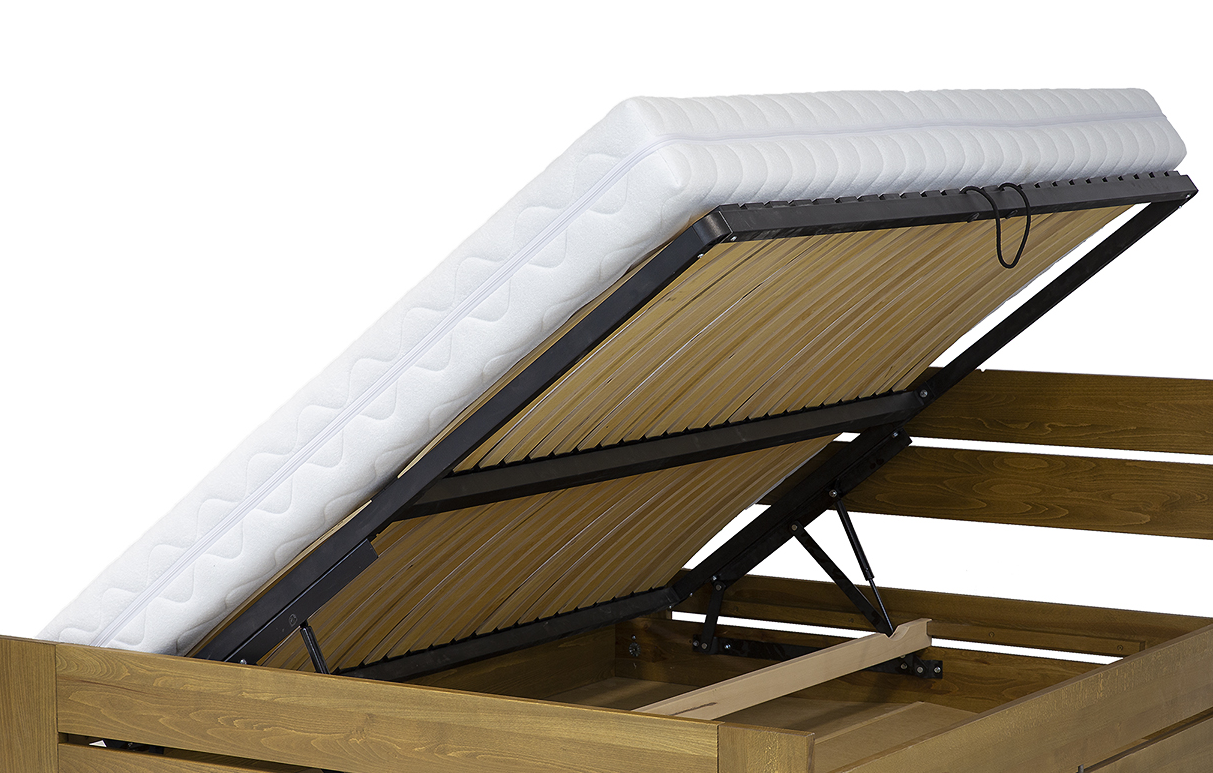 Konstrukcja ramy została wykonana z wysokiej jakości i odpornego na korozję metalu, co gwarantuje długotrwałe użytkowanie. Rama posiada wbudowane siłowniki, który umożliwiają łatwy dostęp do pojemnika. Dodatkowo, rama posiada stelaż z elastycznych listwy, które zapewniają optymalne wsparcie dla materaca.