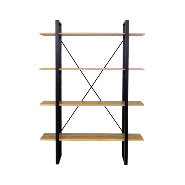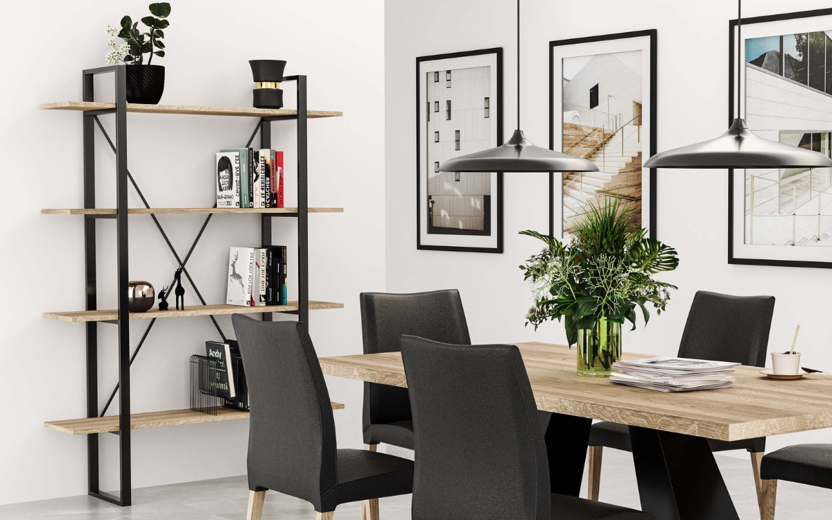 Dębowy regał RG370 z kolekcji Metal to doskonałe połączenie nowoczesności i tradycji, stanie się on ozdobą każdego salonu, sypialni czy gabinetu, wprowadzając do wnętrza industrialny charakter i wygodę użytkowania. Regał łączy w sobie solidność czarnego metalu z naturalnym pięknem litego drewna dębowego, taki mariaż materiałów sprawia, że mebel jest nie tylko trwały, ale także unikatowy i niezwykle atrakcyjny. Cztery solidne półki zapewniają przestrzeń do wyeksponowania rodzinnych pamiątek, książek lub ulubionych przedmiotów.
