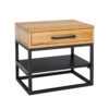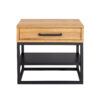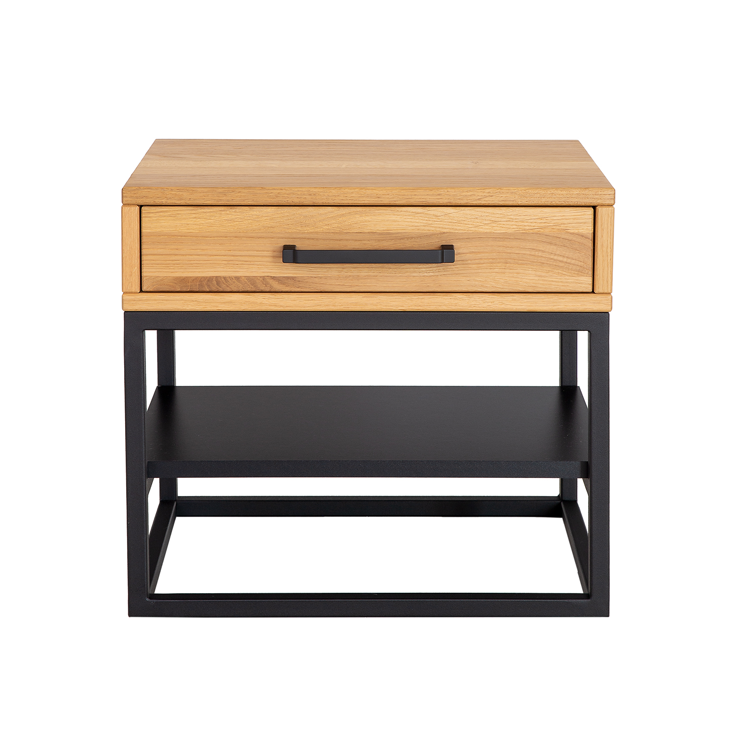 Szafka Nocna SN372 z kolekcji Metal to doskonałe połączenie nowoczesności i tradycji, stanie się ona ozdobą każdej sypialni wprowadzając do wnętrza industrialny charakter i wygodę użytkowania. Szafka łączy w sobie solidność czarnego metalu z naturalnym pięknem litego drewna dębowego, taki mariaż materiałów sprawia, że mebel jest nie tylko trwały, ale także unikatowy i niezwykle atrakcyjny. Przestronna szuflada zapewniają przestrzeń do przechowywania niezbędnych przedmiotów, takich jak książki, okulary czy inne akcesoria, które chcesz mieć pod ręką. Jej piękny dębowy front wyposażono w wygodny, ergonomiczny uchwyt, ułatwiający codzienne użytkowanie.