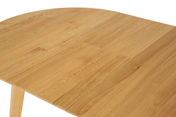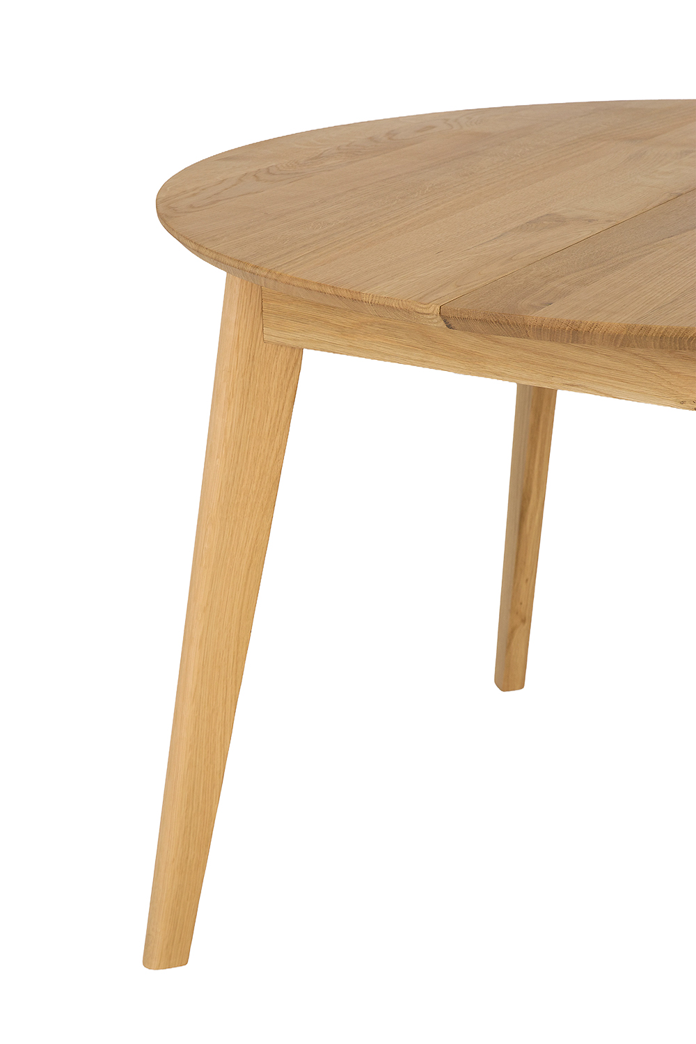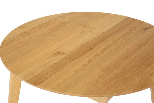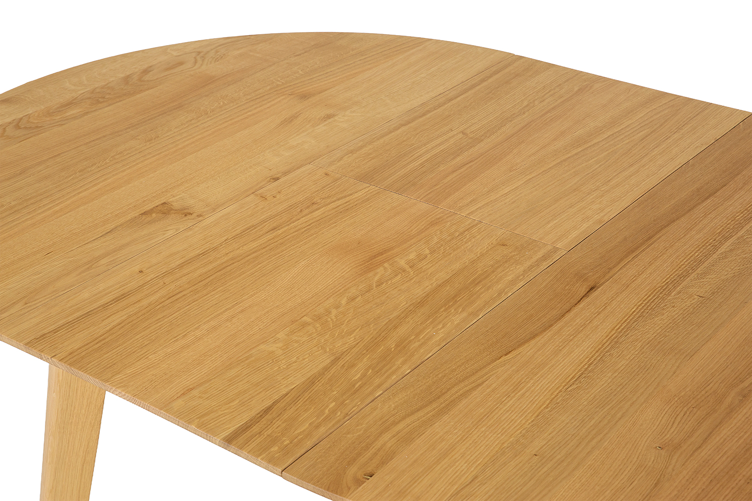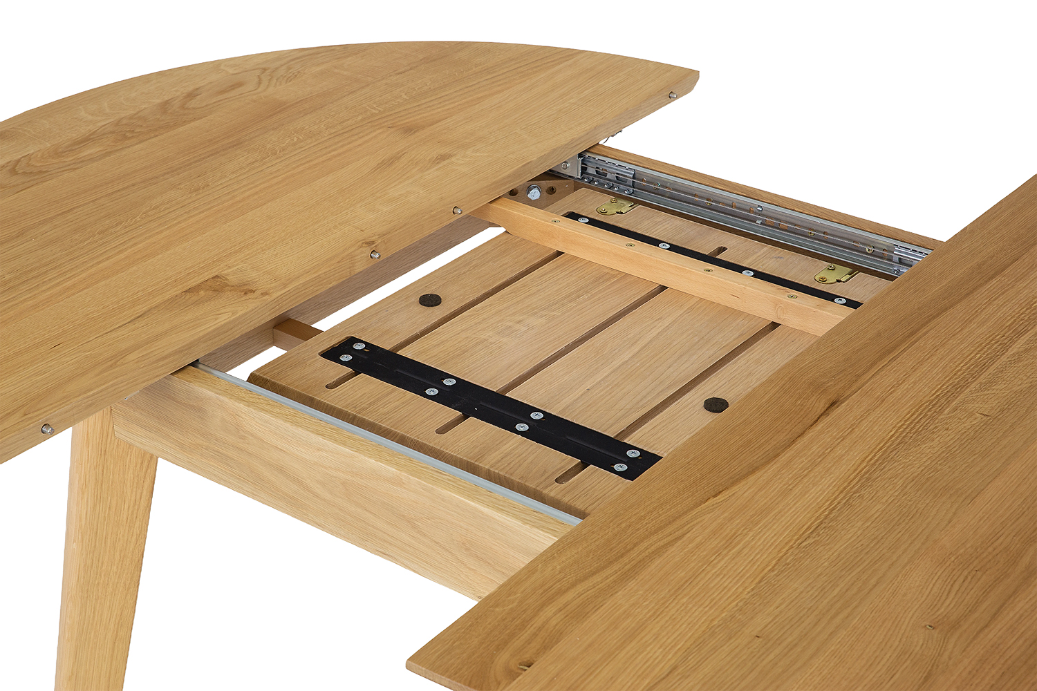 Okrągły stół ST305 wykonany jest z litego drewna dębowego, które jest znane z trwałości i elegancji. Solidne lamele dębowe nadają mu naturalny i stylowy wygląd. Delikatnie ścięty i zaoblony blat zapewnia nie tylko estetyczny wygląd, ale także bezpieczeństwo i wygodę użytkowania, ponieważ brak ostrych krawędzi zmniejsza ryzyko urazów. Stół jest wyposażony w mechanizm rozkładania, który pozwala na łatwe powiększenie jego powierzchni. Dokładki stołu są praktycznie rozwiązane - chowają się dyskretnie pod blatem, co pozwala na szybkie i bezproblemowe zwiększenie miejsca do siedzenia podczas rodzinnych spotkań czy przyjęć. Dzięki przemyślanemu designowi i wysokiej jakości wykonania, stół ten staje się nie tylko elementem wystroju, ale przede wszystkim praktycznym meblem, który zaspokaja potrzeby nawet najbardziej wymagających użytkowników.