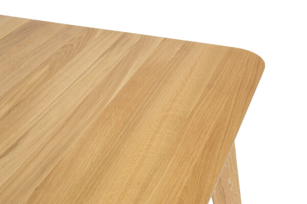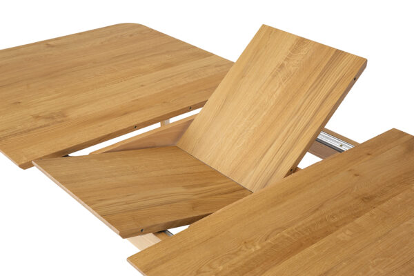 Nowoczesny stół ST306 wykonany jest z litego drewna dębowego, które jest znane z trwałości i elegancji. Solidne lamele dębowe nadają mu naturalny i stylowy wygląd. Delikatnie ścięty i zaoblony blat zapewnia nie tylko estetyczny wygląd, ale także bezpieczeństwo i wygodę użytkowania, ponieważ brak ostrych krawędzi zmniejsza ryzyko urazów. Stół jest wyposażony w mechanizm rozkładania, który pozwala na łatwe powiększenie jego powierzchni. Dokładki stołu są praktycznie rozwiązane - chowają się dyskretnie pod blatem, co pozwala na szybkie i bezproblemowe zwiększenie miejsca do siedzenia podczas rodzinnych spotkań czy przyjęć. Dzięki przemyślanemu designowi i wysokiej jakości wykonania, stół ten staje się nie tylko elementem wystroju, ale przede wszystkim praktycznym meblem, który zaspokaja potrzeby nawet najbardziej wymagających użytkowników.