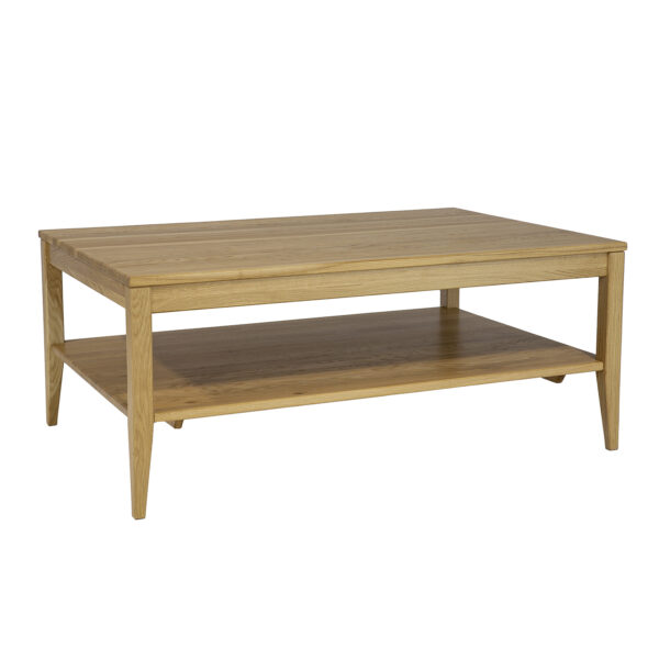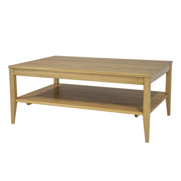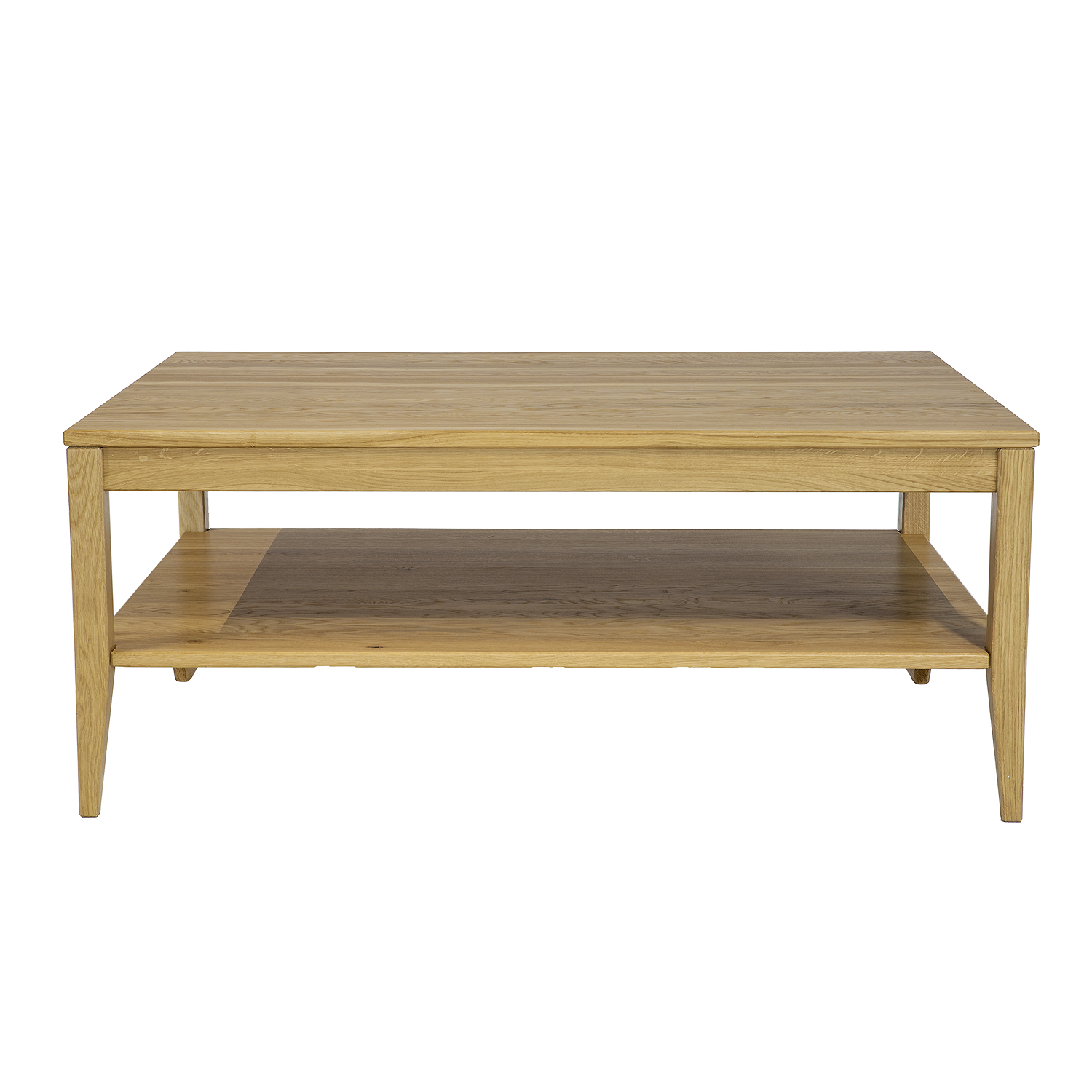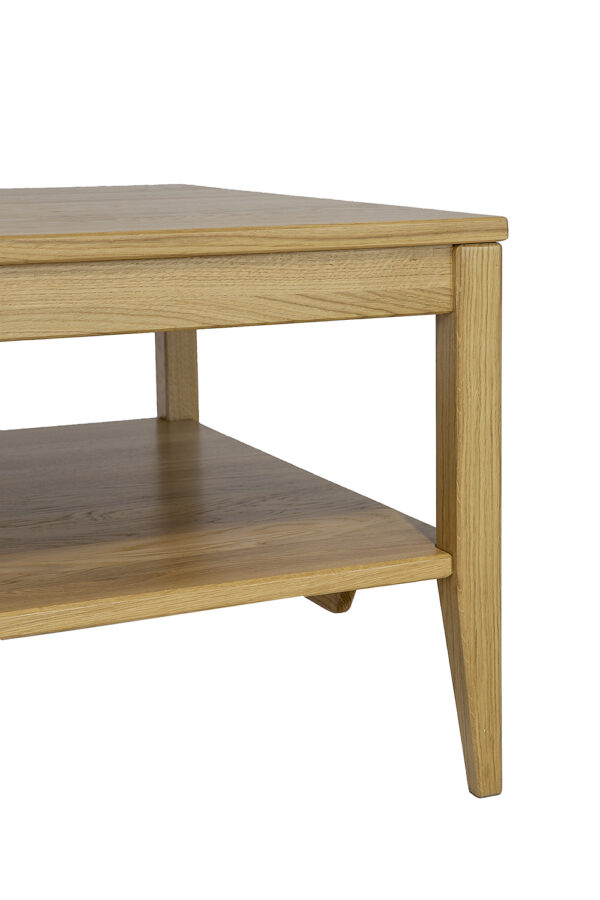 Dębowy stolik kawowy ST330 z kolekcji Retro to idealne połączenie funkcjonalności i estetyki, które wzbogaci każdy salon. Wykonany z najwyższej jakości litego drewna dębowego, zapewnia nie tylko wytrzymałość, ale również ciepły i elegancki wygląd, który pasuje do różnorodnych stylów wnętrzarskich. Niepowtarzalny wygląd i niezwykłą trwałość gwarantuje 2 cm blat wykonany z litych lameli dębowych. Stolik wyposażony został w praktyczną półkę, na której można umieścić ulubione książki, czasopisma czy piloty do telewizora, utrzymując porządek i organizację. Wysokie, smukłe nogi nadają mu nowoczesnego wyglądu, a wnętrzu lekkości i przestronności, oferując praktyczne rozwiązania ułatwiające utrzymanie czystości.