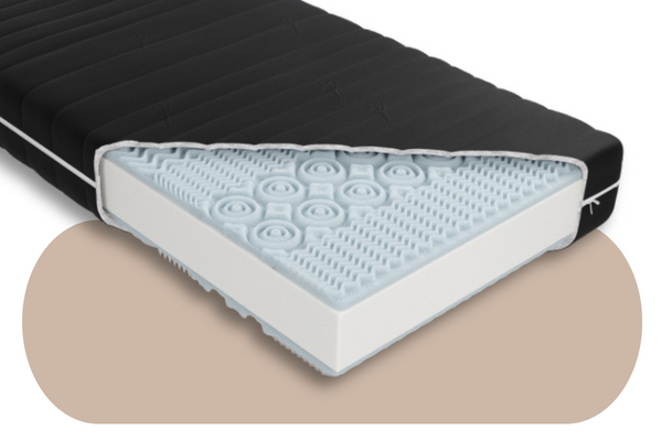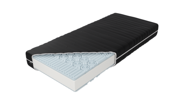Materac o wysokości ok. 18 cm (w zależności od pokrowca) zbudowany jest z 10 cm warstwy z wytrzymałej, elastycznej pianki poliuretanowej, obłożonej obustronnie 3 cm sprężystą i nie ulegającą deformacjom modelowaną pianką BIO. Zapewnia optymalną cyrkulację powietrza. Utrzymanie wysokiego poziomu czystości zapewnia zamek błyskawiczny umożliwiający zdjęcie pokrowca.