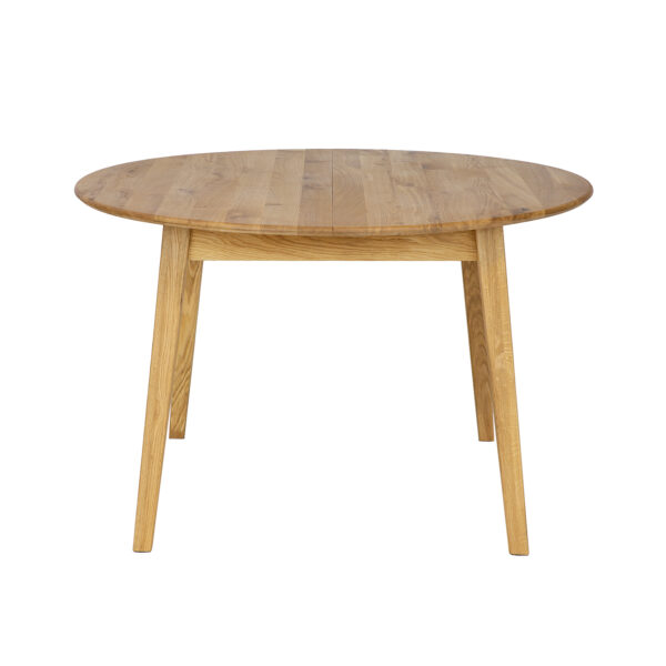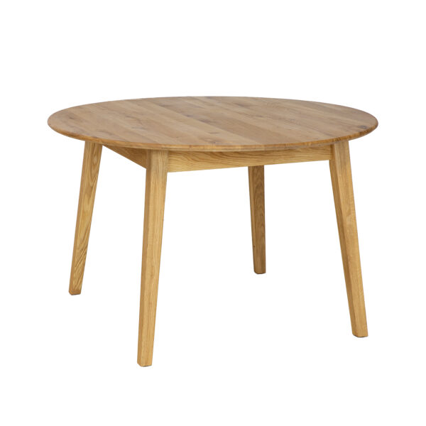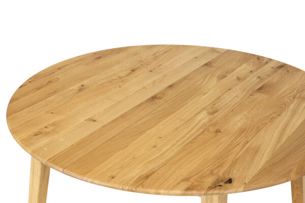 Okrągły stół ST392 wykonany jest z litego drewna dębowego, które jest znane z trwałości i elegancji. Solidne lamele dębowe nadają mu naturalny i stylowy wygląd. Delikatnie ścięty i zaoblony blat zapewnia nie tylko estetyczny wygląd, ale także bezpieczeństwo i wygodę użytkowania, ponieważ brak ostrych krawędzi zmniejsza ryzyko urazów. Stół jest wyposażony w mechanizm rozkładania, który pozwala na łatwe powiększenie jego powierzchni. Dokładki stołu są praktycznie rozwiązane - chowają się dyskretnie pod blatem, co pozwala na szybkie i bezproblemowe zwiększenie miejsca do siedzenia podczas rodzinnych spotkań czy przyjęć. Dzięki przemyślanemu designowi i wysokiej jakości wykonania, stół ten staje się nie tylko elementem wystroju, ale przede wszystkim praktycznym meblem, który zaspokaja potrzeby nawet najbardziej wymagających użytkowników.