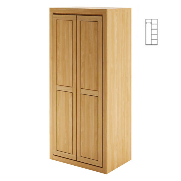 Bukowa szafa SF402 z kolekcji Vip charakteryzuje się klasyczną bryłą, która łączy w sobie elegancję i funkcjonalność. Naturalne usłojenie drewna bukowego dodaje jej ciepła i charakteru. Wnętrze szafy wyposażono w drążek, dzięki któremu z łatwością zorganizujesz swoją odzież oraz w półki zapewniające dodatkową przestrzeń do przechowywania. Szafa transportowana w całości, nie wymaga montażu.