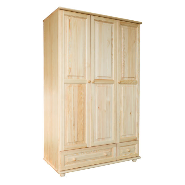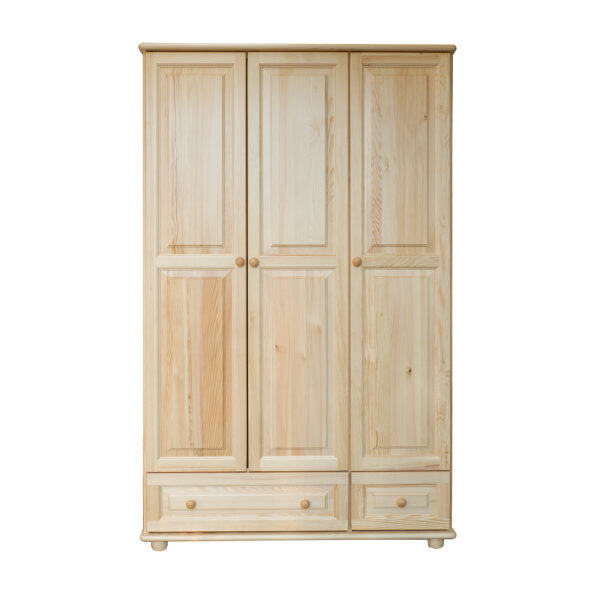 Sosnowa szafa SF106 doskonale sprawdzi się w sypialni, salonie, garderobie czy przedpokoju. Dzięki swojej uniwersalności i estetyce, pasuje do różnych stylów wnętrzarskich, od skandynawskiego po rustykalny. To idealny wybór dla osób ceniących sobie funkcjonalność połączoną z naturalnym pięknem drewna. Wnętrze szafy zostało zaprojektowane z myślą o maksymalnej funkcjonalności, jedna z części skrywa przestronne półki, oferujące dużo miejsca do przechowywania odzieży, pościeli czy innych domowych akcesoriów. Szeroki drążek, pozwala wygodnie przechowywać ubrania, zapobiegając ich zagnieceniom. Dwie praktyczne szuflady, oferują mnóstwo miejsca na drobniejsze przedmioty, takie jak bielizna czy dokumenty. Fronty szafy zdobią ozdobne frezy, które dodają jej niepowtarzalnego uroku i klasycznego charakteru. Szafa transportowana w paczkach do montażu.